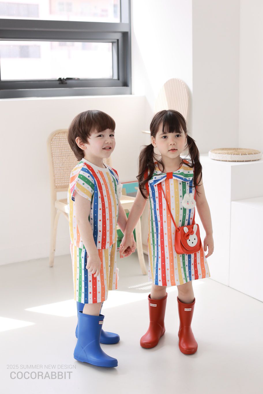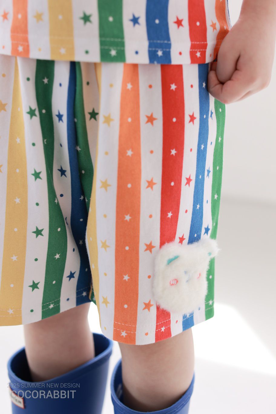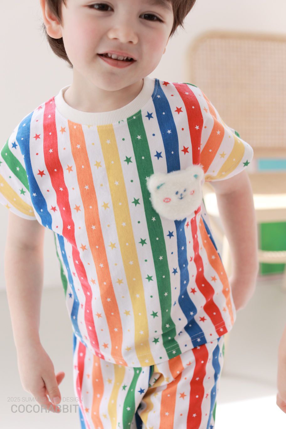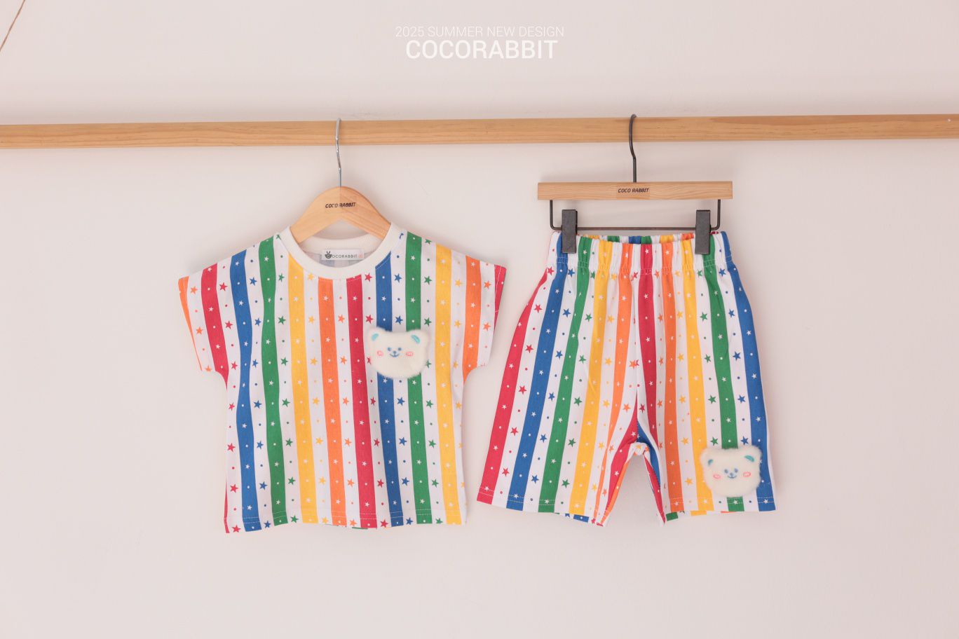 韓國 Coco Rabbit - 彩虹星條短袖上衣X短褲套裝-毛絨熊