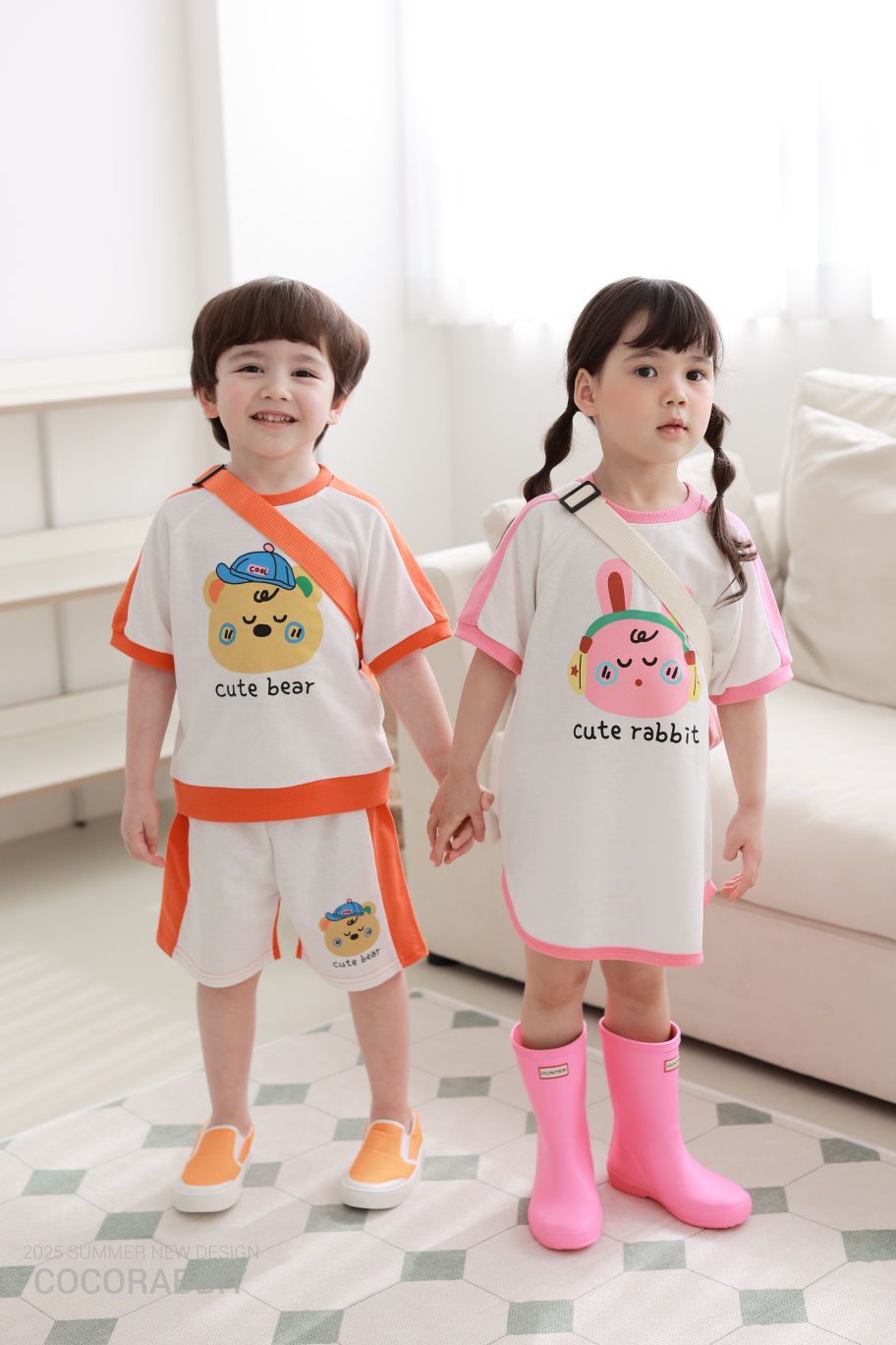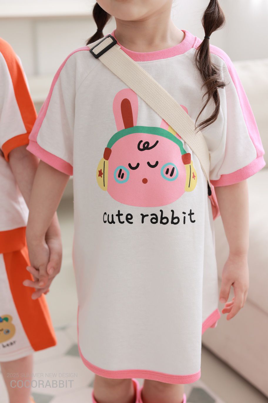 韓國 Coco Rabbit - (附包包)大耳機兔印連身洋裝-粉