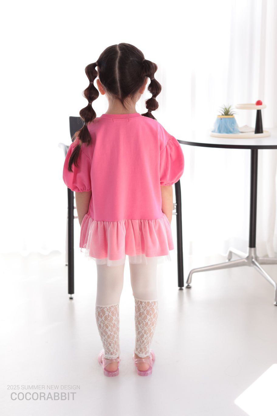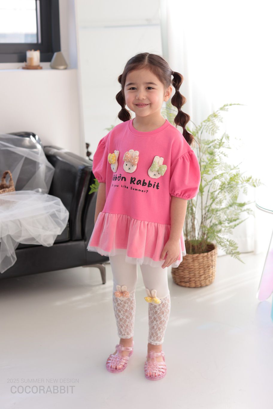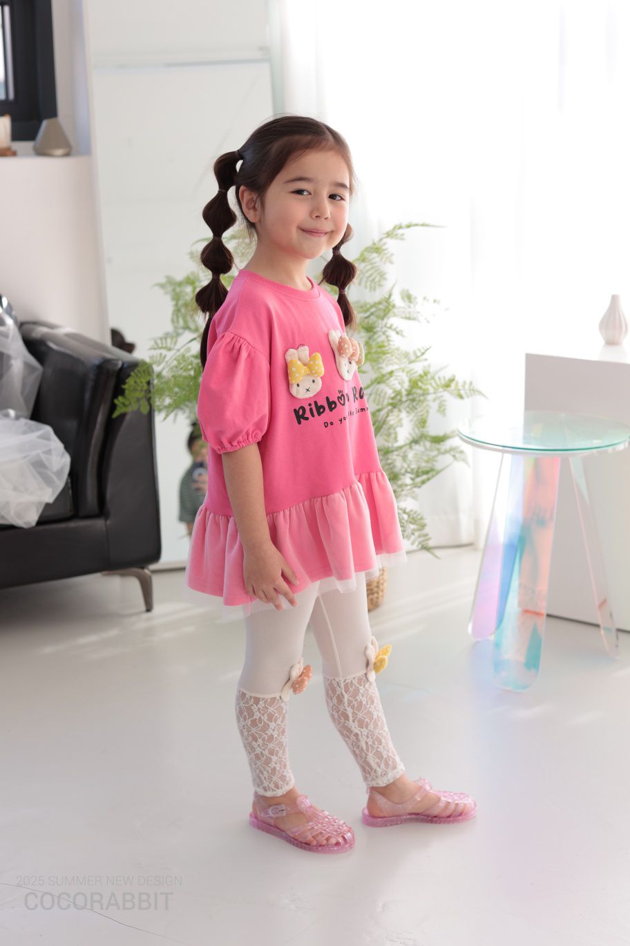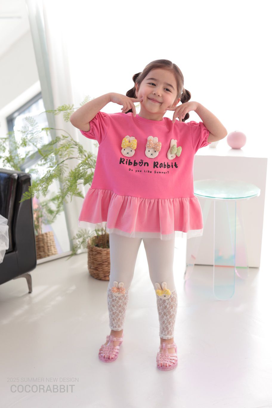 韓國 Coco Rabbit - 鬆緊腰蝴蝶結小兔拼接蕾絲內搭褲-米白