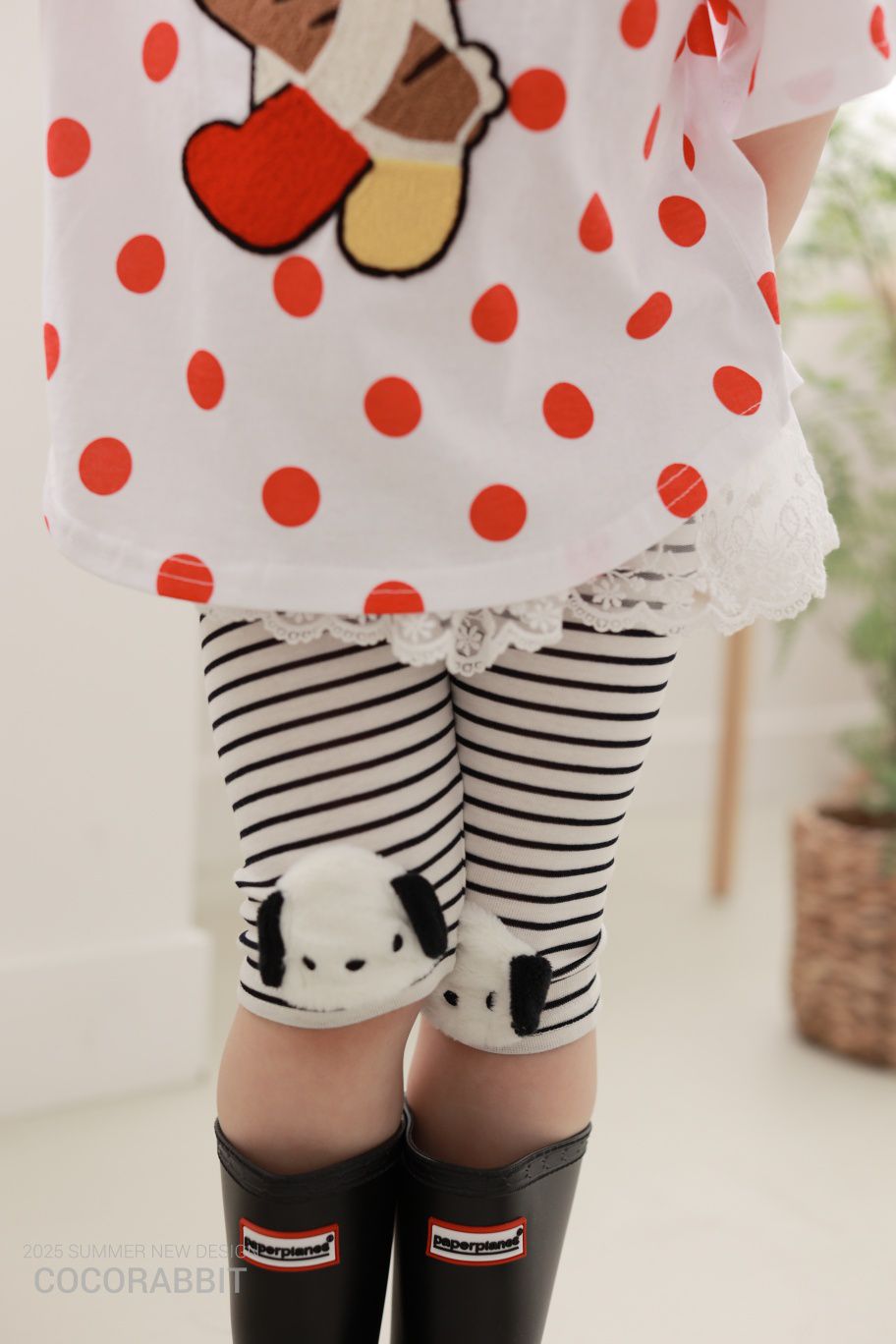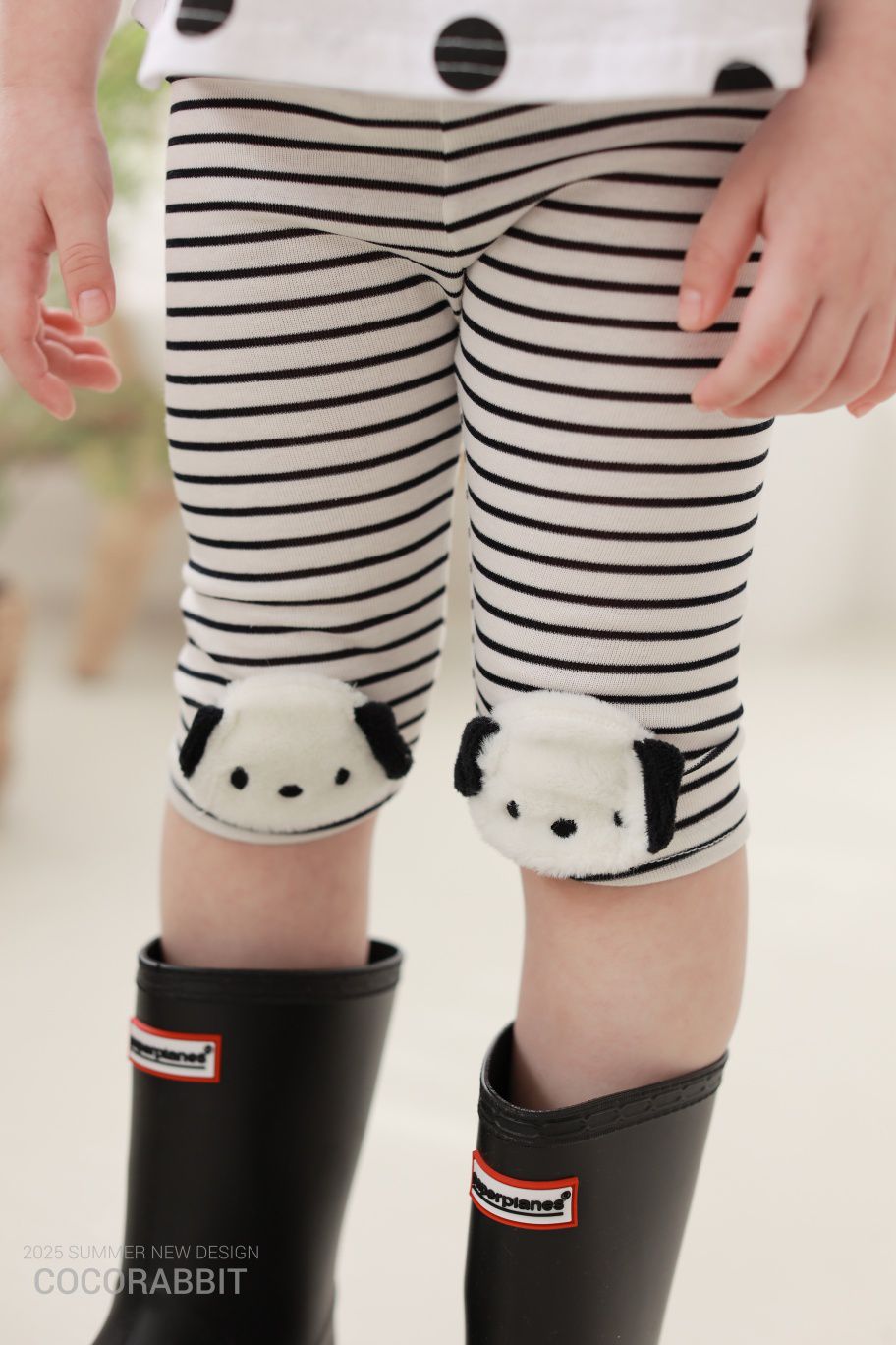韓國 Coco Rabbit - 鬆緊腰毛絨小狗裝飾內搭褲-黑X白