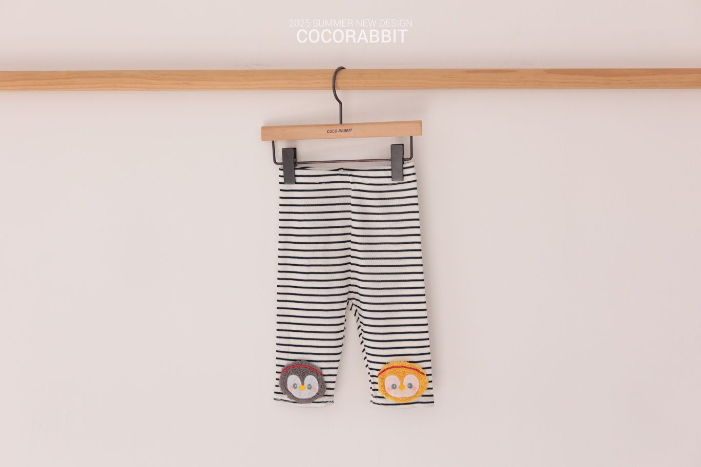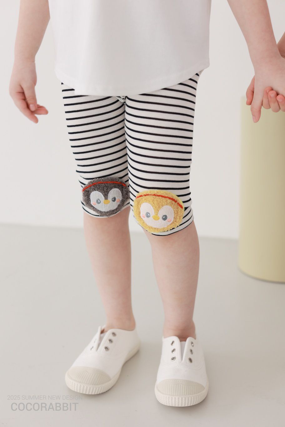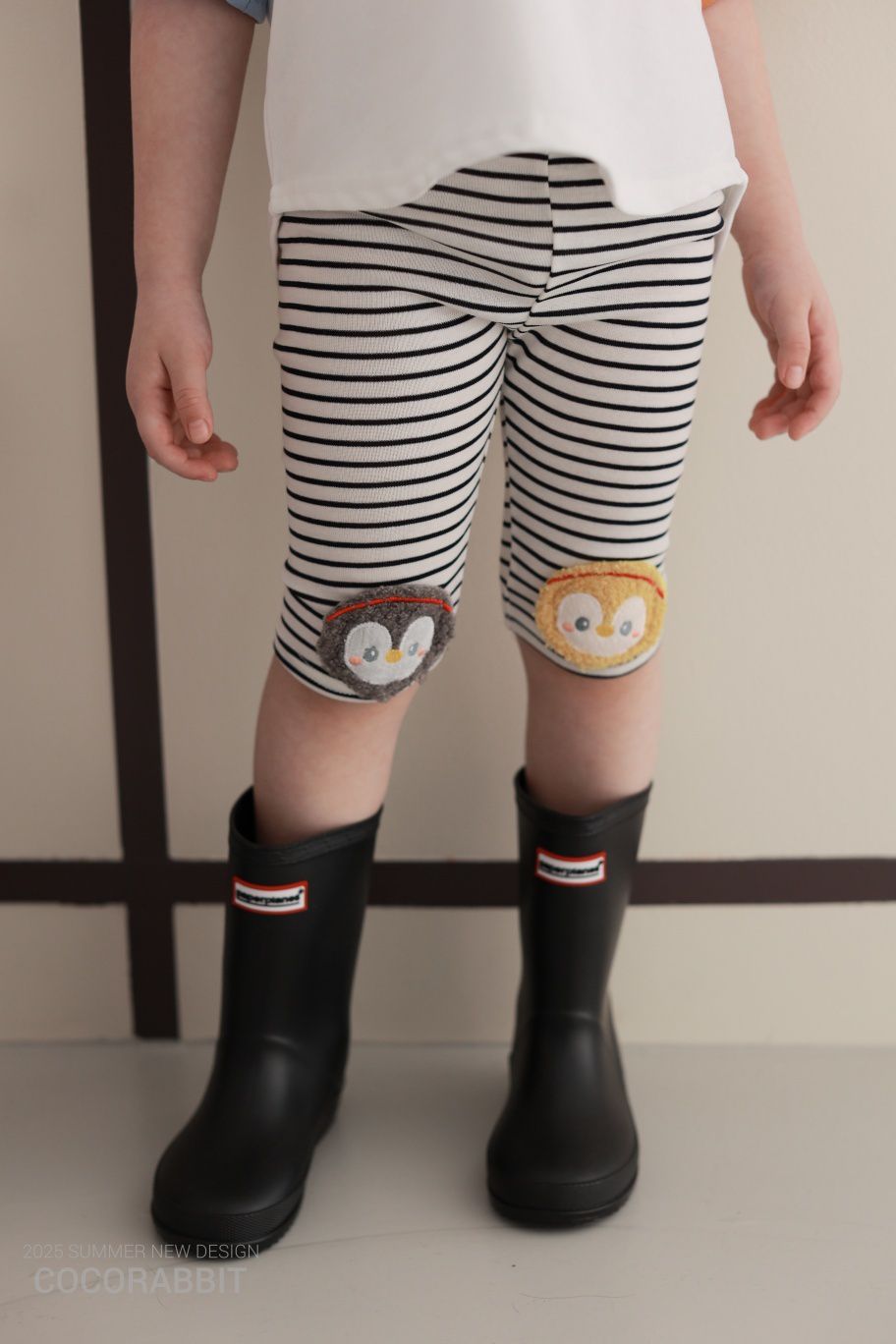 韓國 Coco Rabbit - 鬆緊腰毛絨企鵝裝飾條紋內搭褲-黑X白