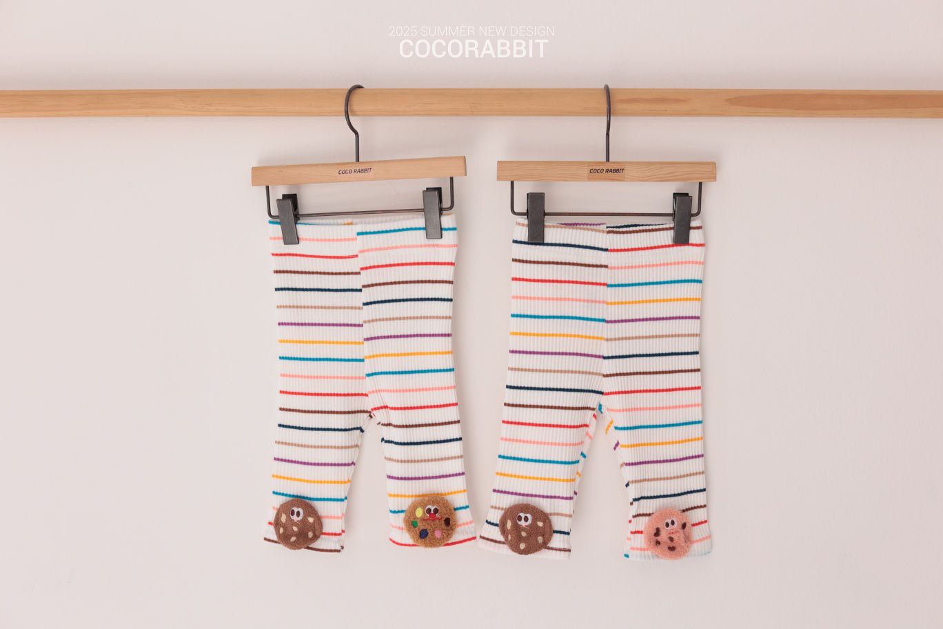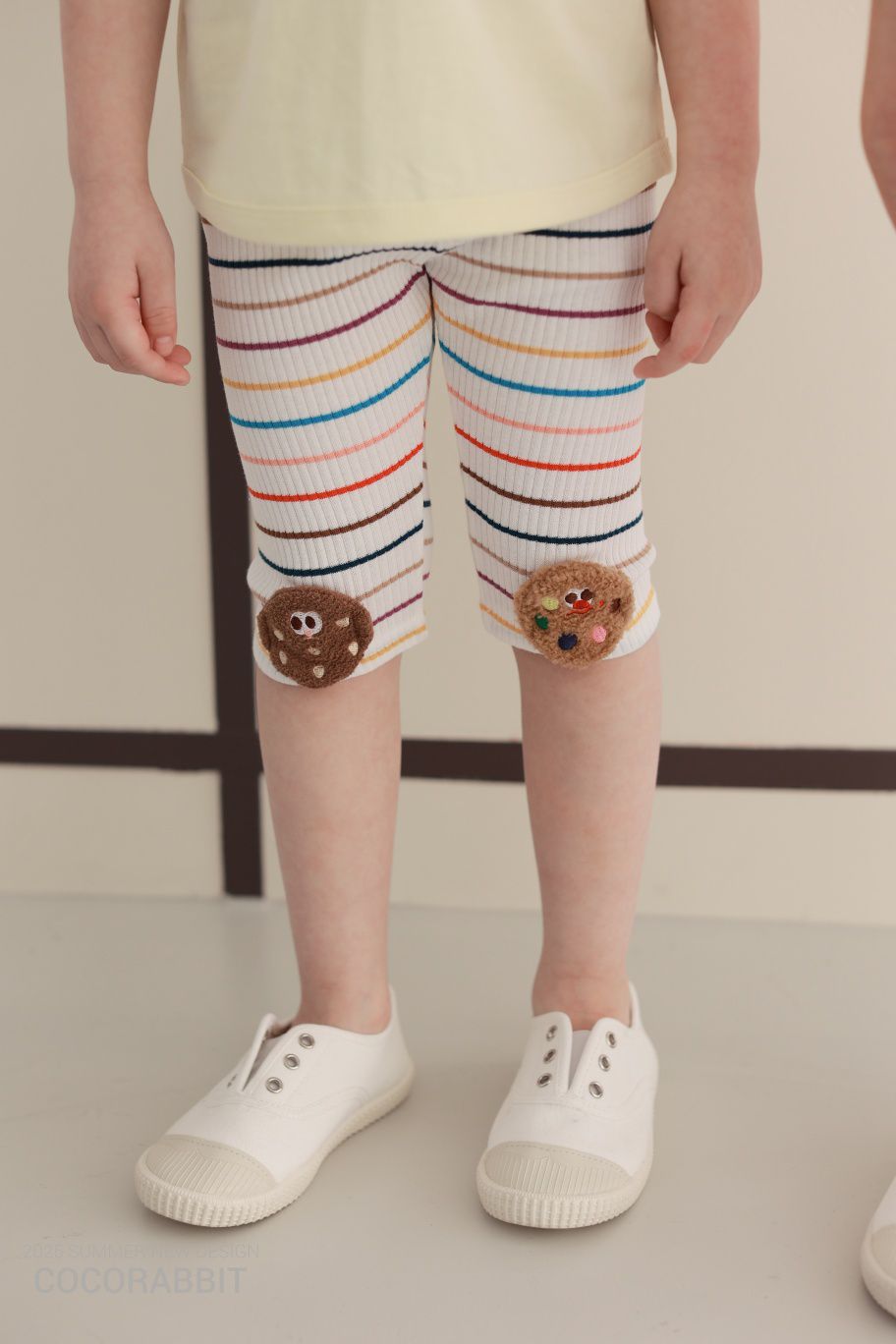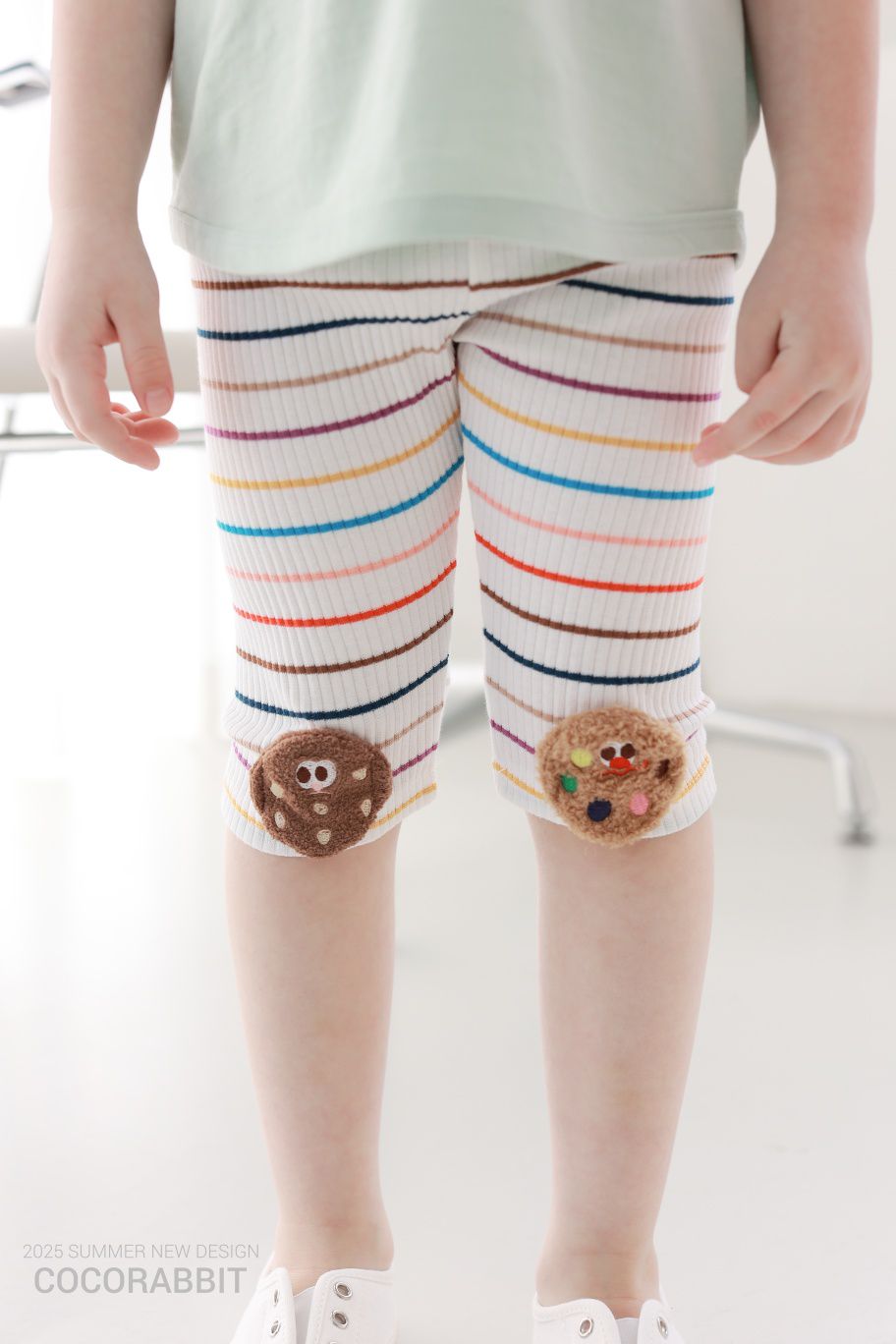 韓國 Coco Rabbit - 鬆緊腰毛絨餅乾裝飾內搭褲-彩虹條紋-棕