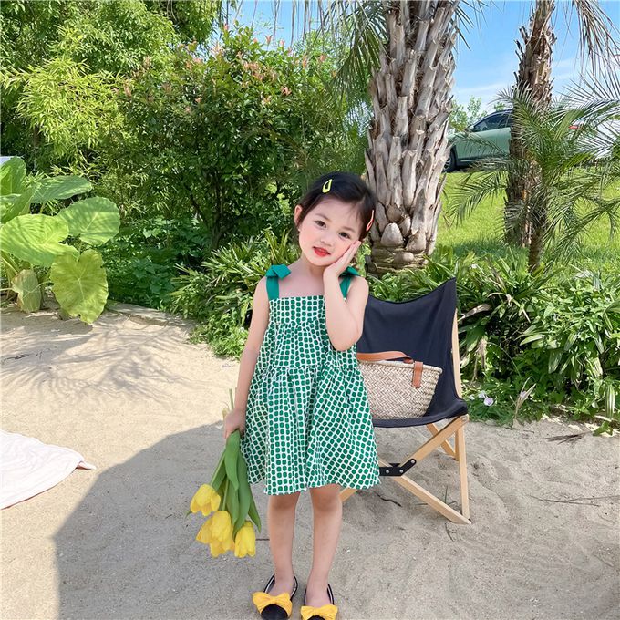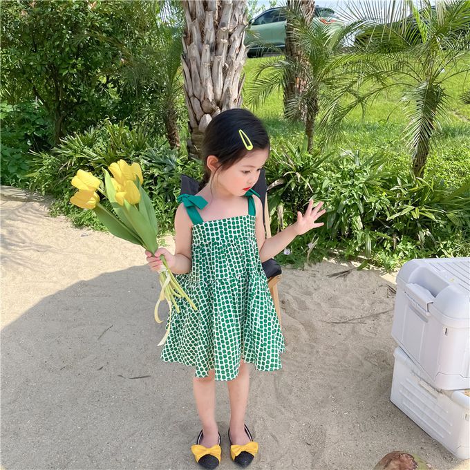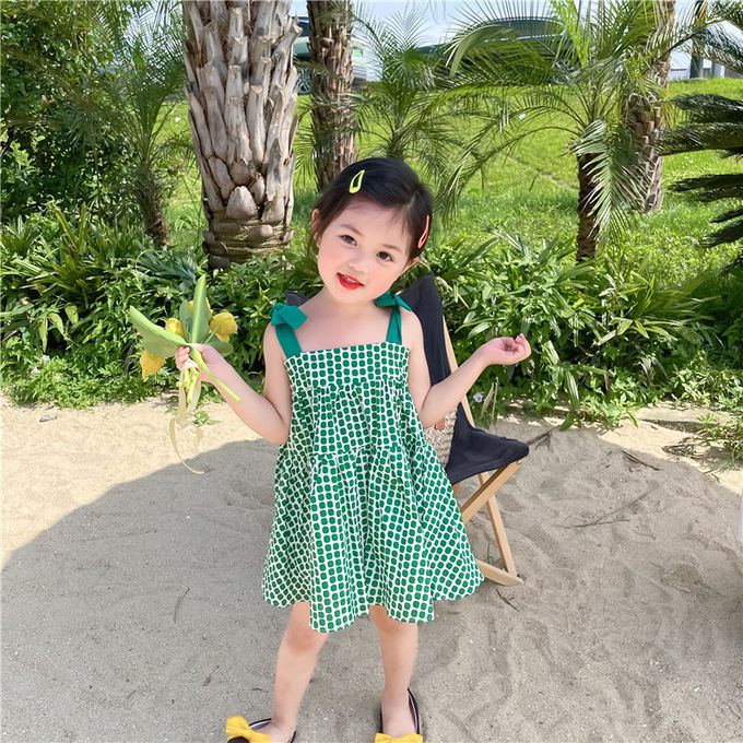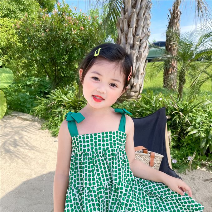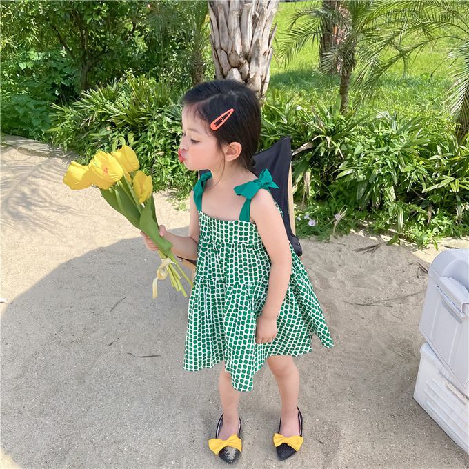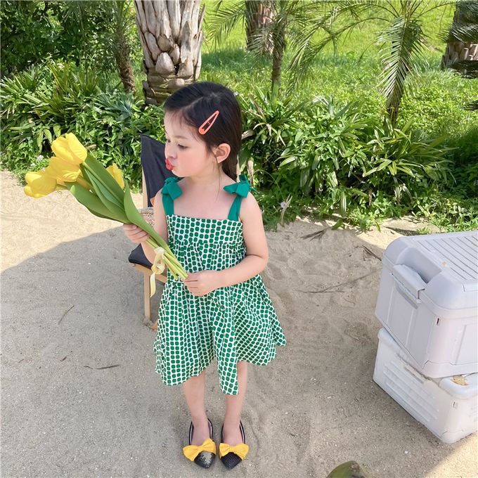 甜心蝴蝶結無袖洋裝-點點-綠色