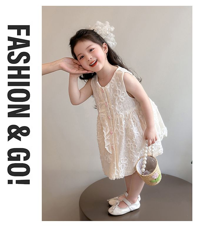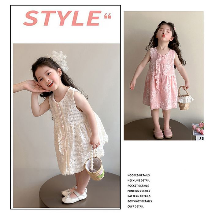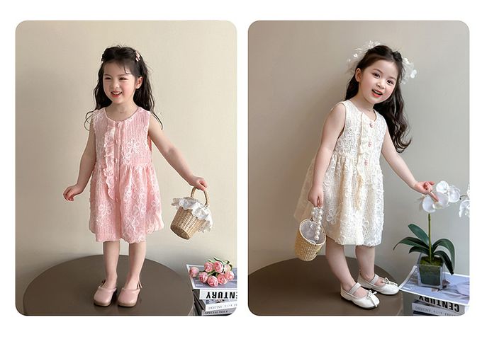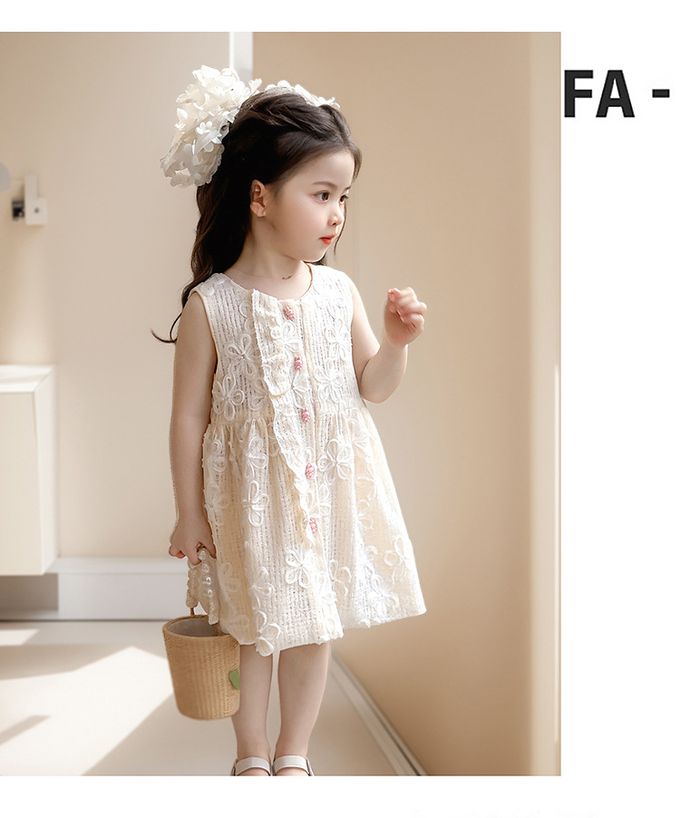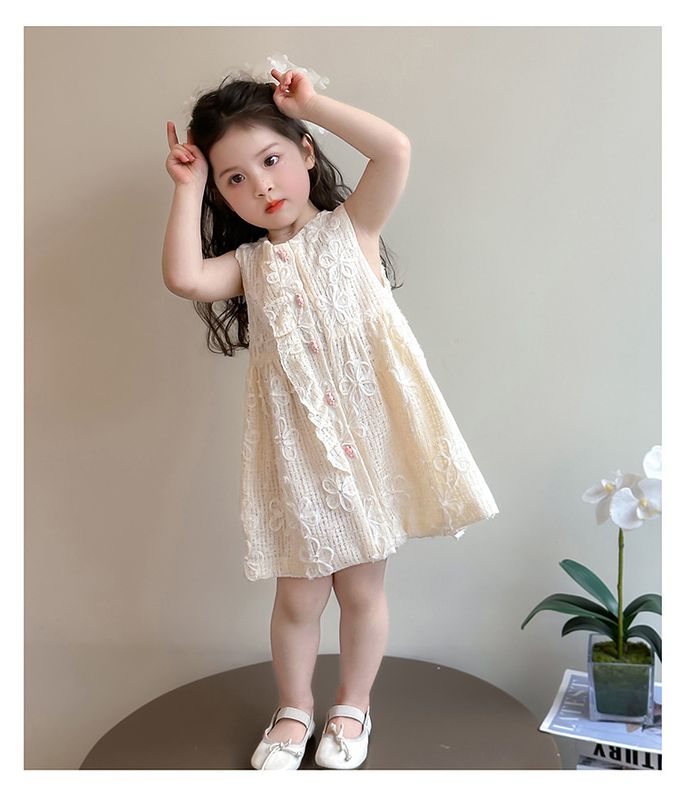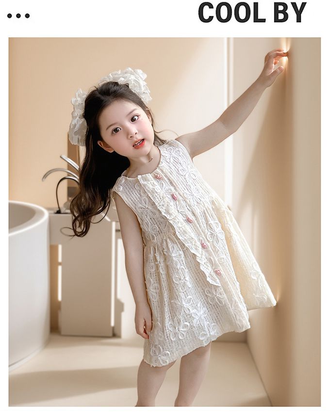 絕美蕾絲無袖洋裝-立體雕花-杏色
