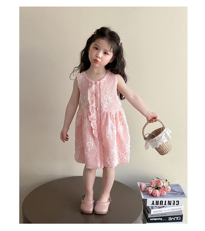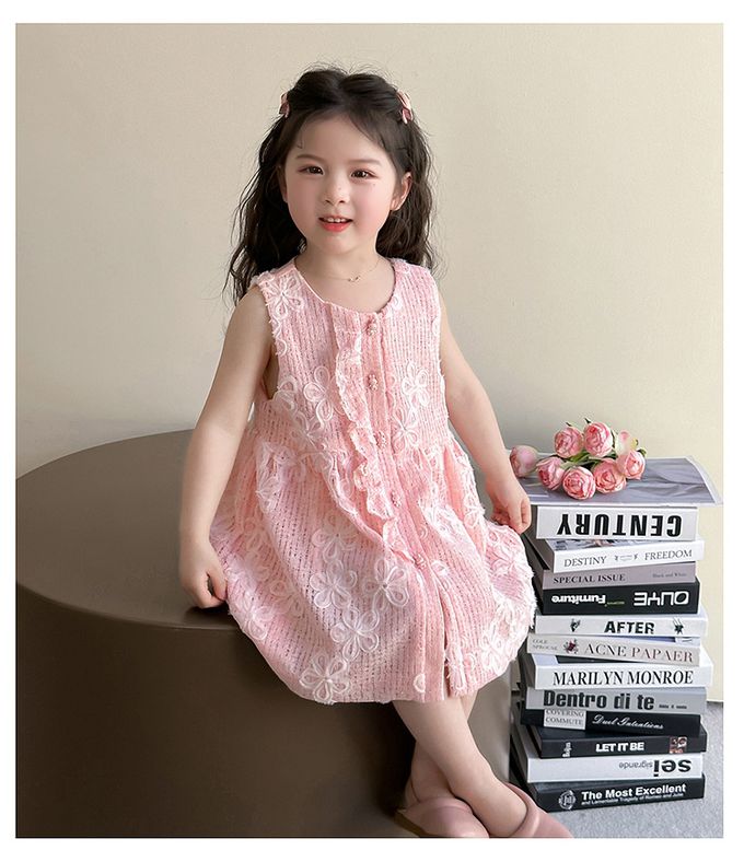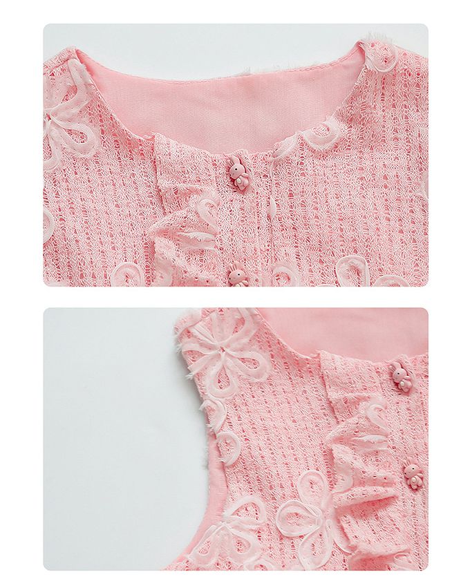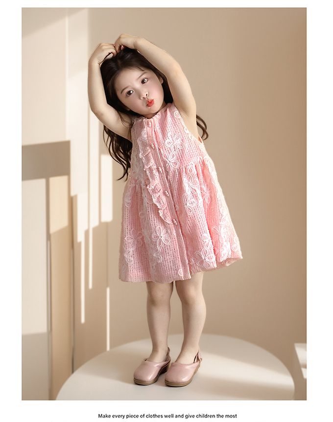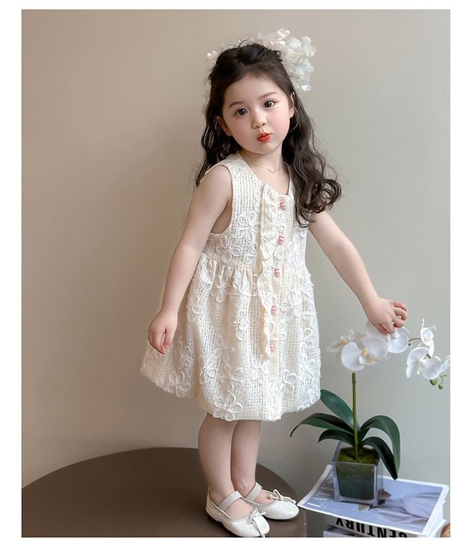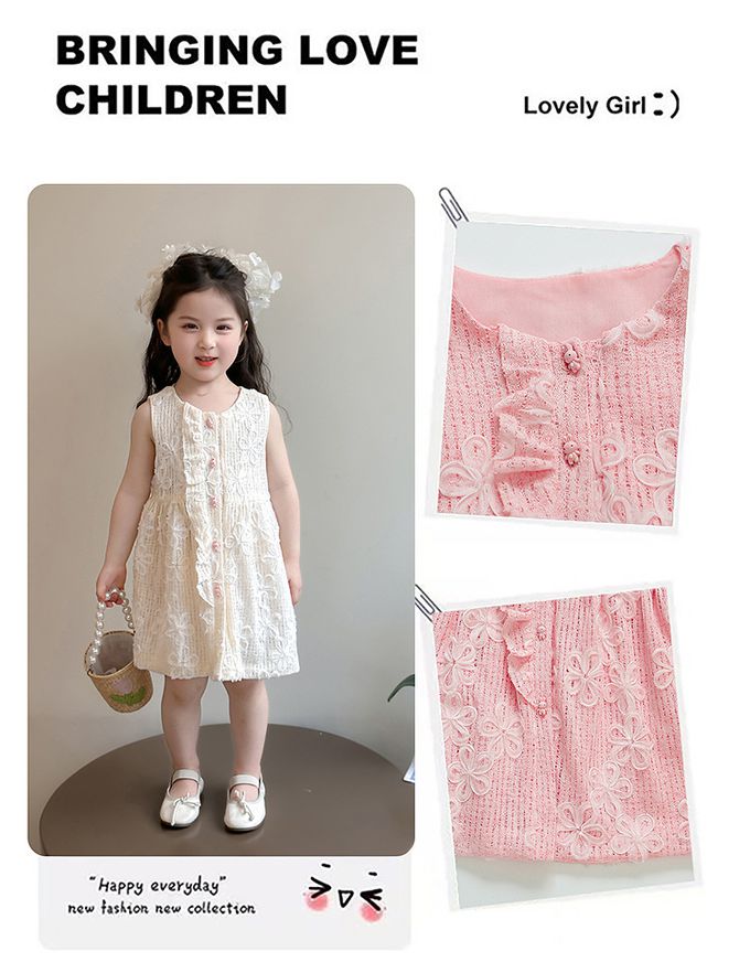絕美蕾絲無袖洋裝-立體雕花-杏色