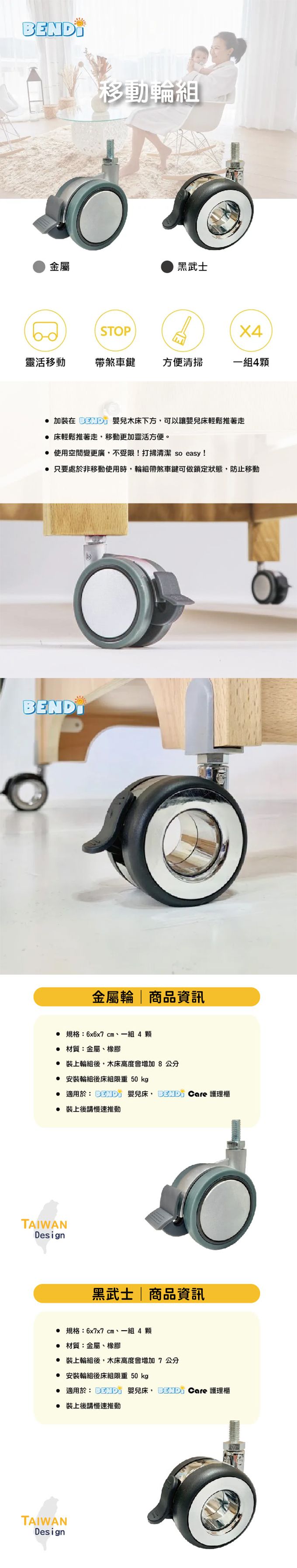 安裝在BENDi嬰兒床下方,輕鬆推著嬰兒床移動