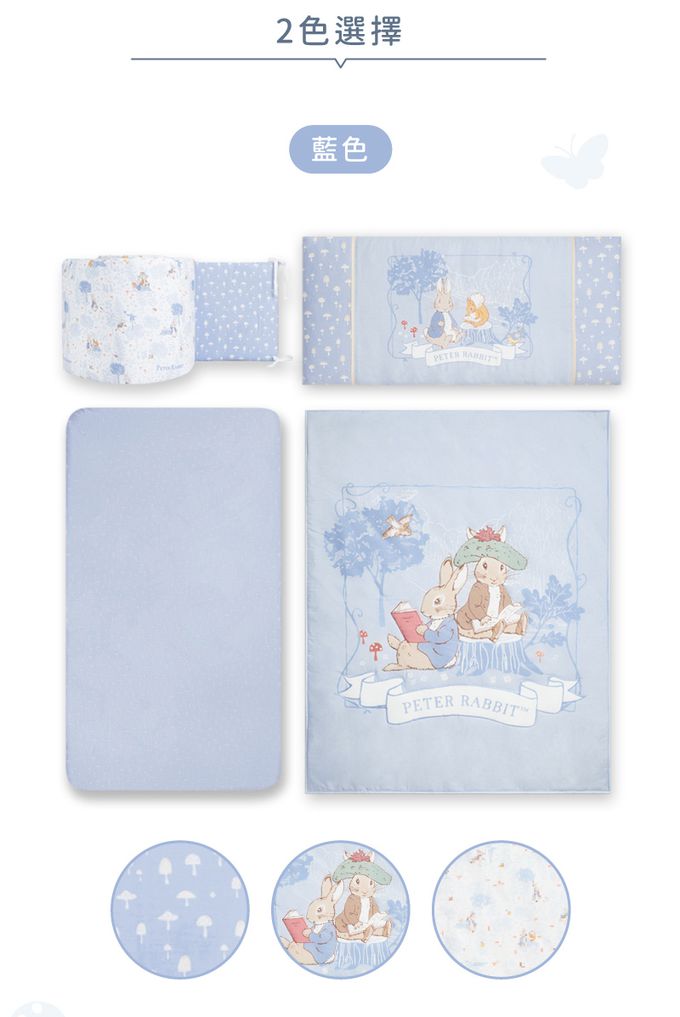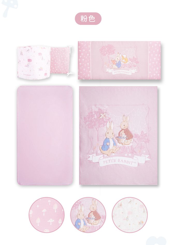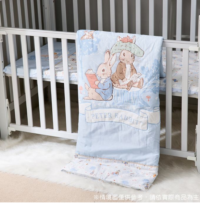 悅讀比得兔寢具系列為寶寶嚴選高密度精梳棉面料,搭配典雅圖紋設計,呈現活潑純真氣息,提供寶寶溫馨、舒適的睡眠環境。