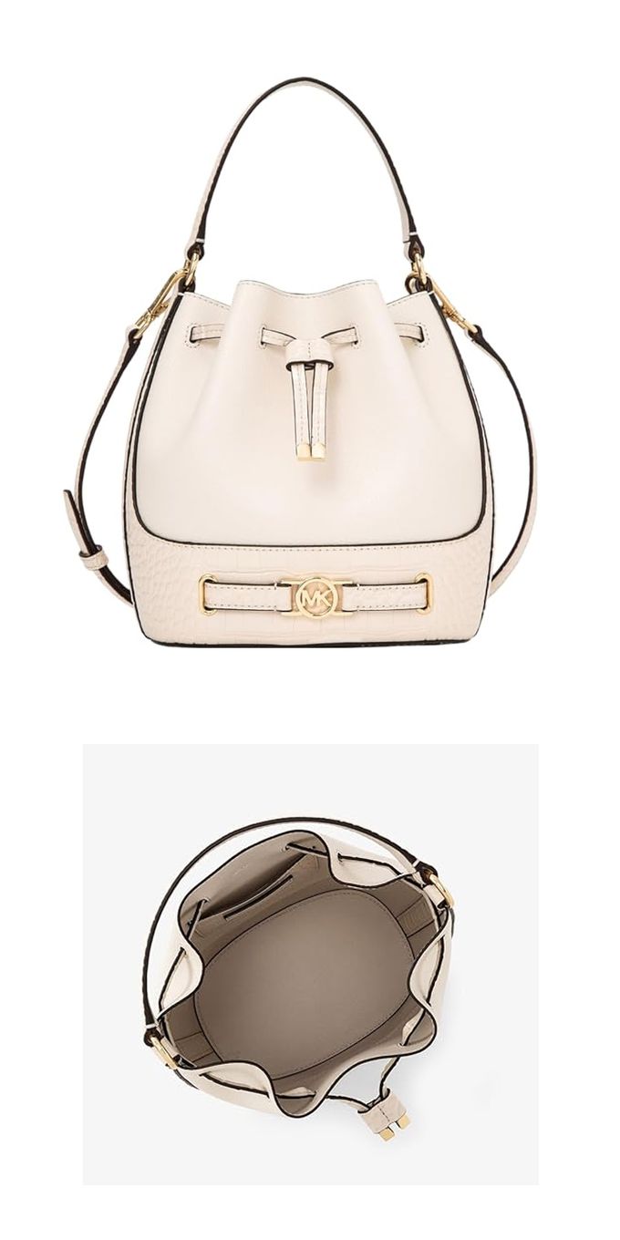 蛇紋皮革拼接素面皮革兩用水桶包 (白)