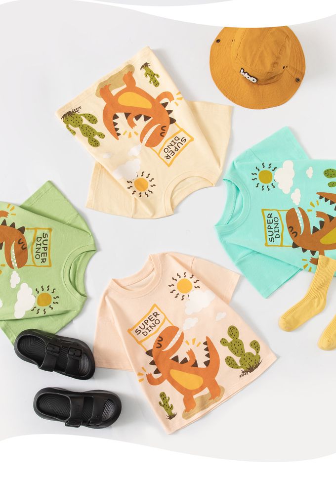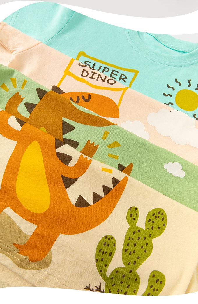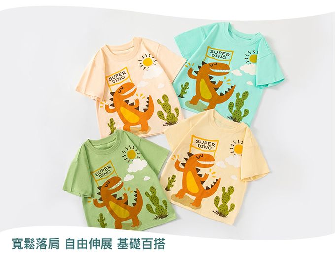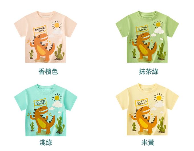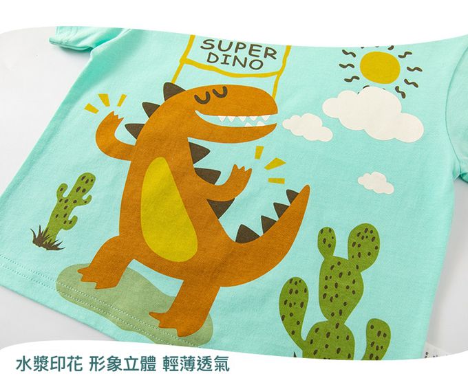 純棉短袖上衣-仙人掌恐龍-香檳色