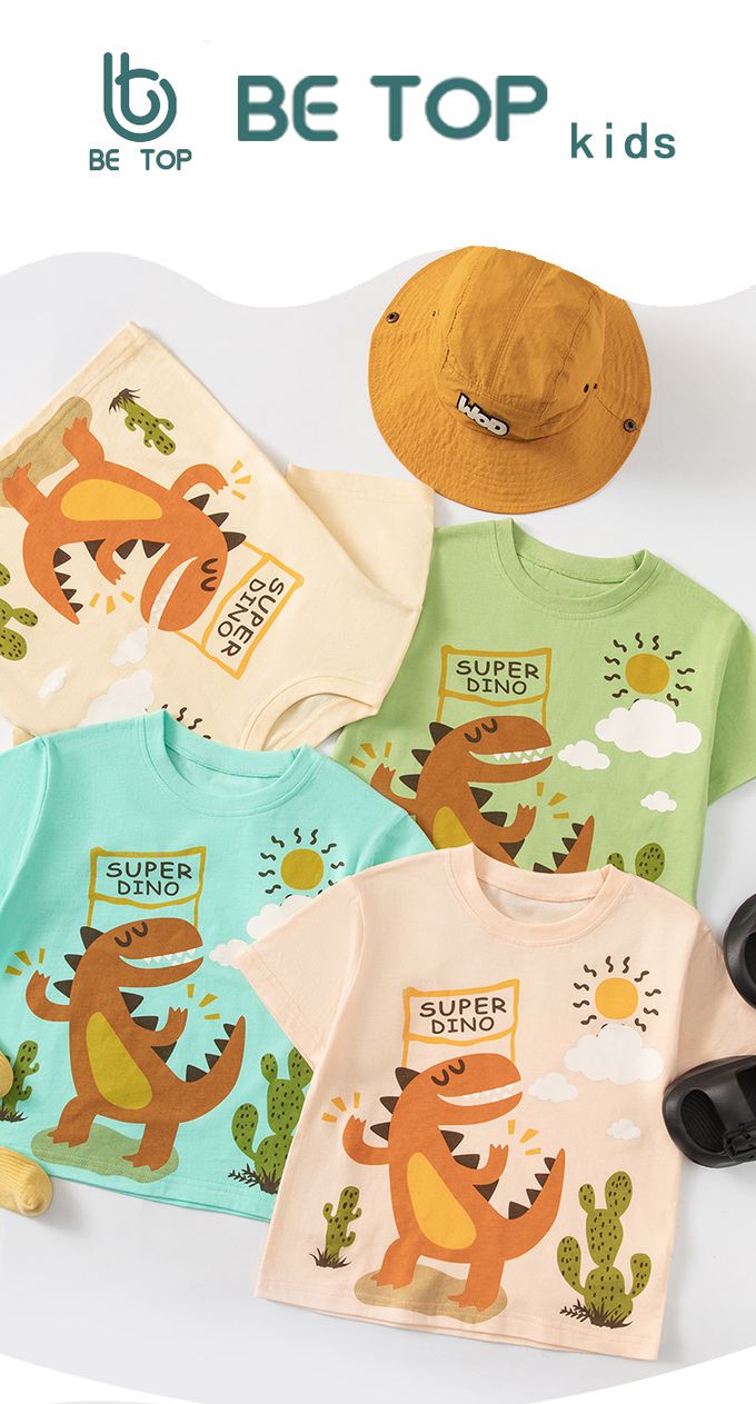 BE TOP - 純棉短袖上衣-帥氣恐龍-米黃