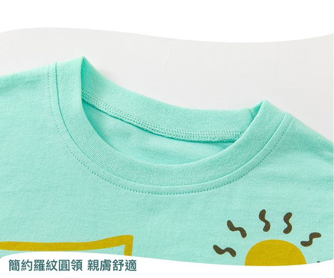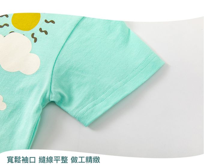 BE TOP - 純棉短袖上衣-可愛恐龍-黃藍拼袖