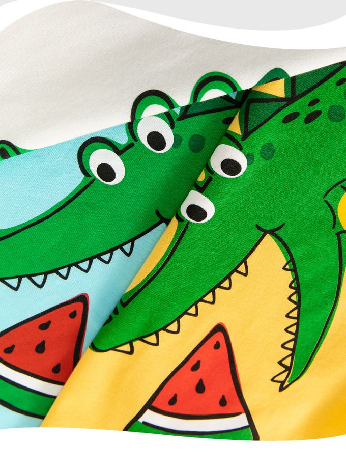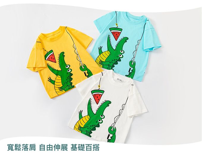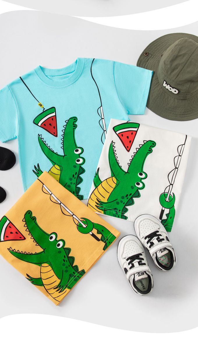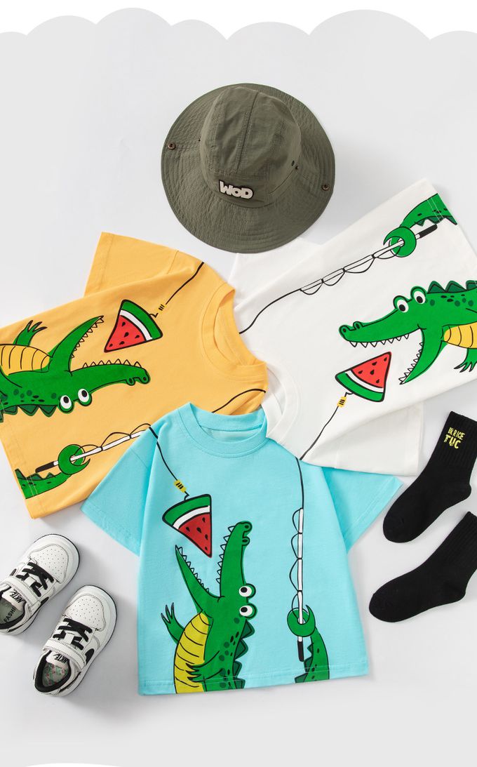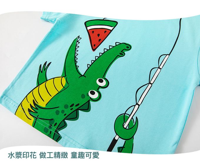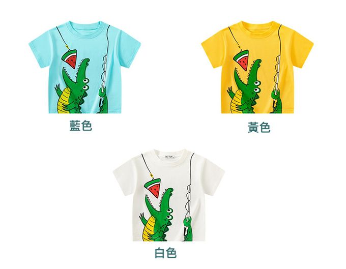 純棉短袖上衣-鱷魚吃西瓜-黃色