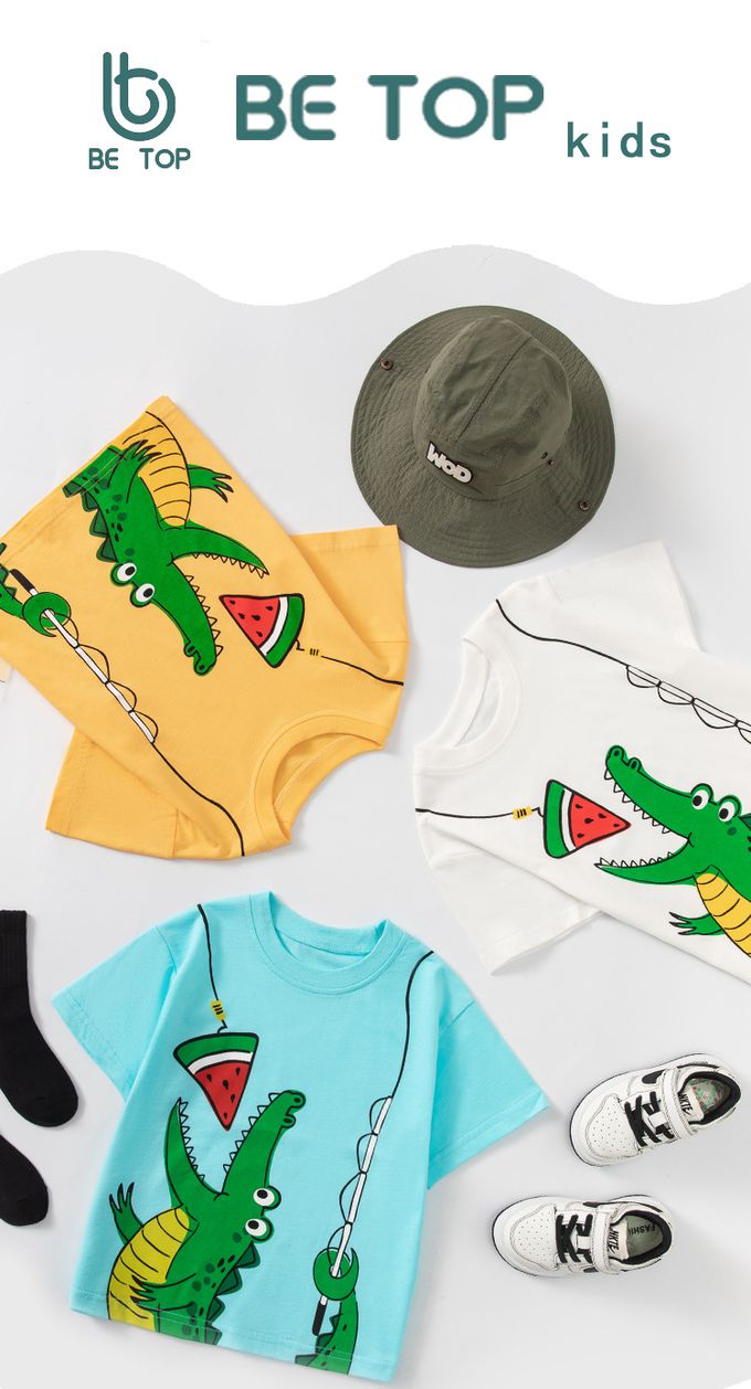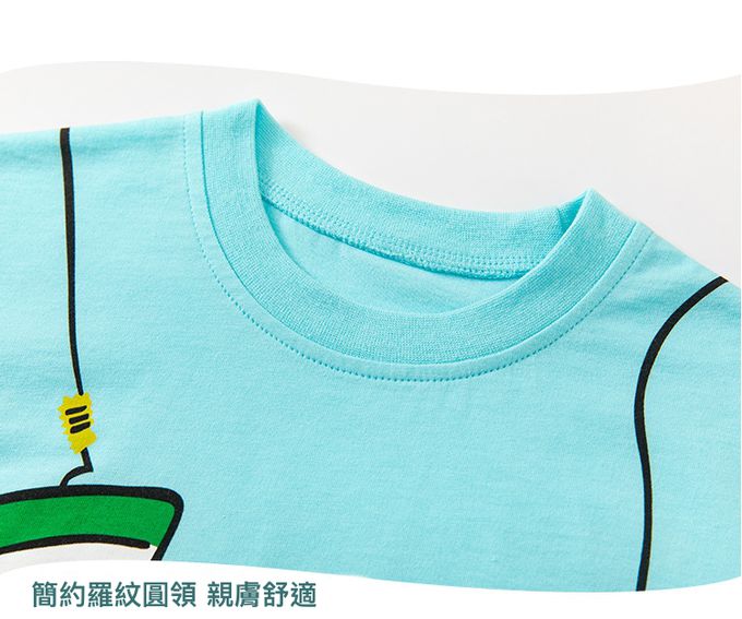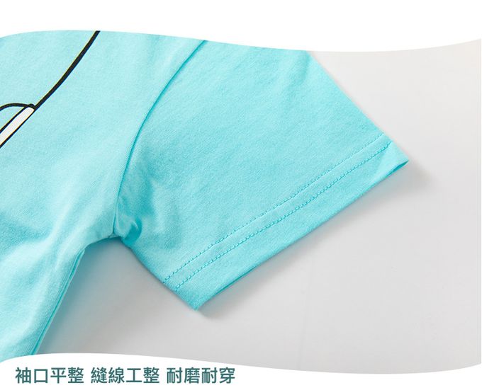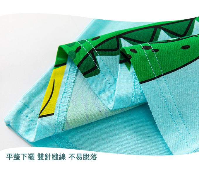 BE TOP - 純棉短袖上衣-可愛恐龍-黃藍拼袖
