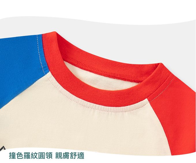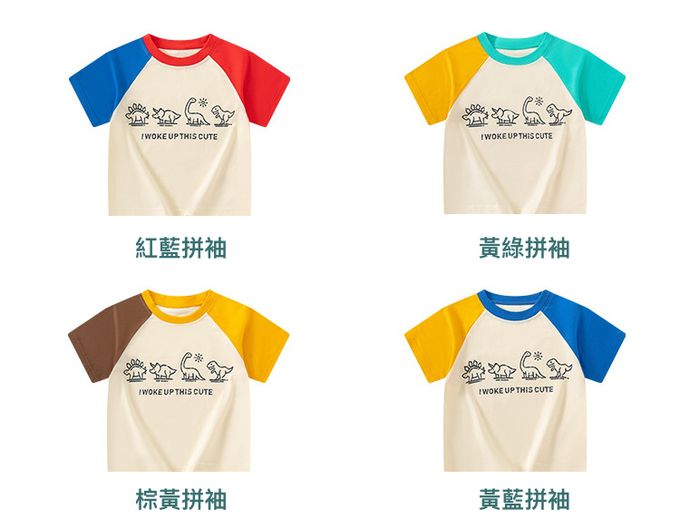 純棉短袖上衣-可愛恐龍-紅藍拼袖