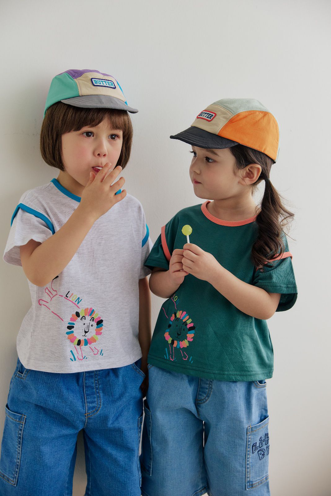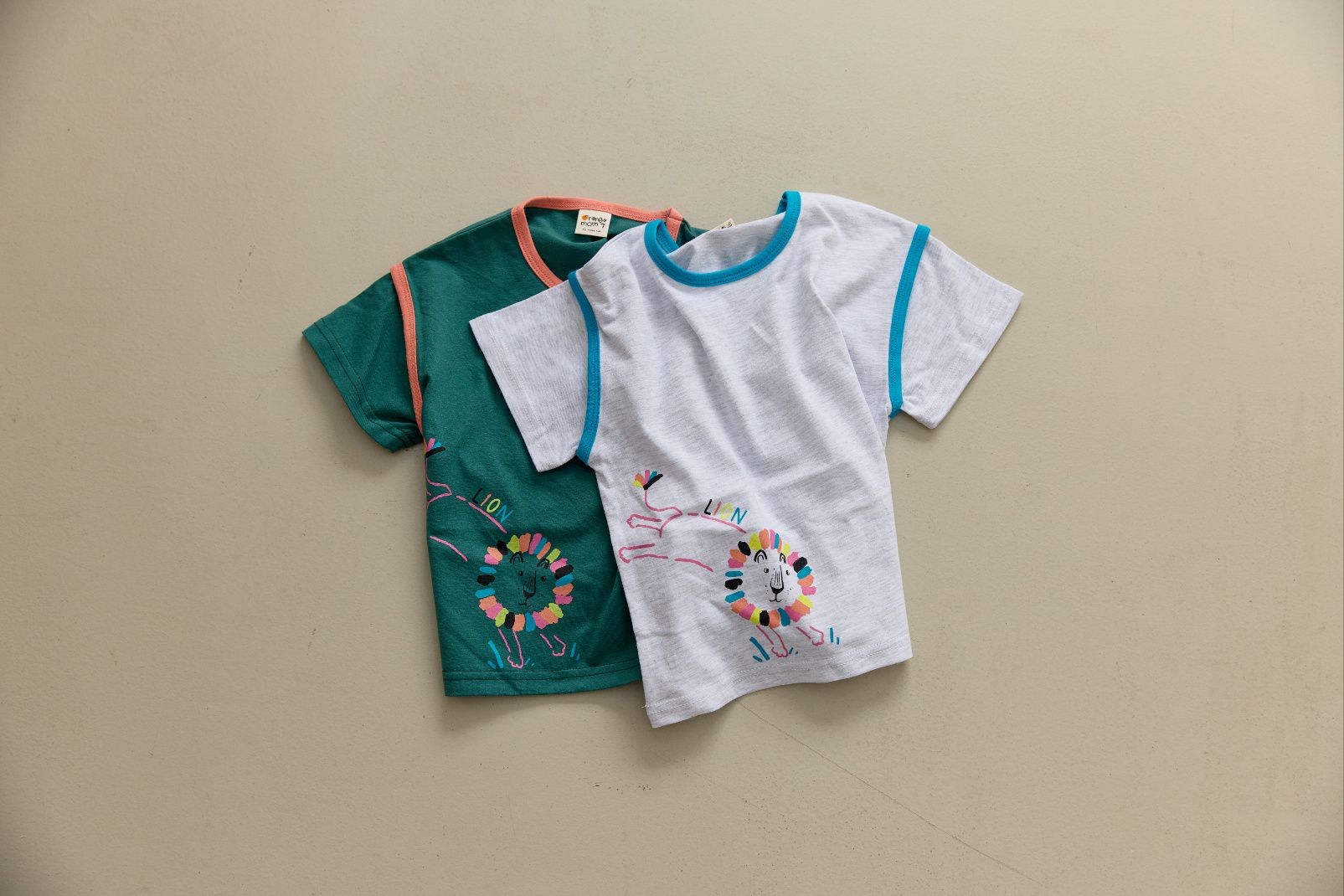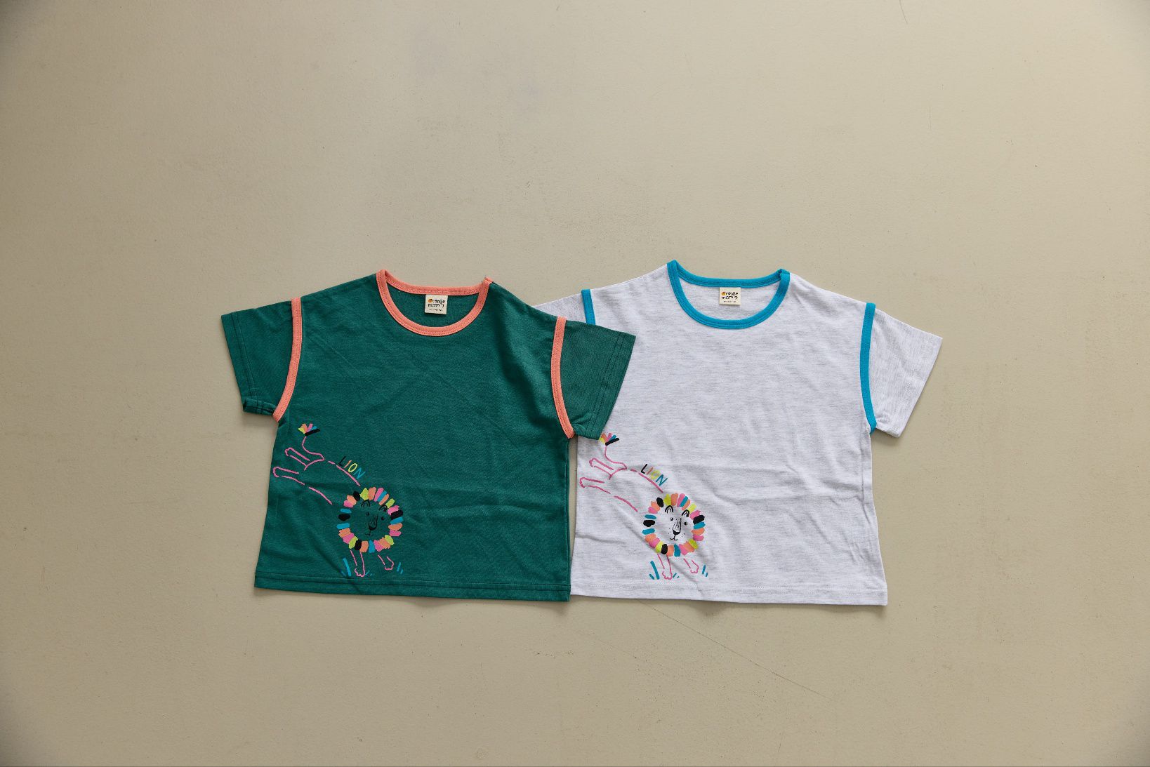 韓國 Orange Mom - 塗鴉跳躍獅子短袖上衣-軍綠