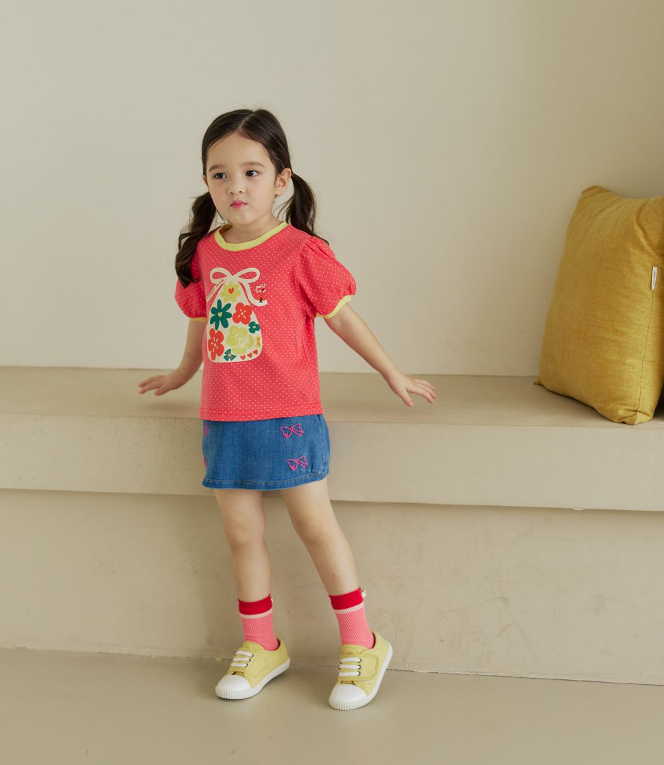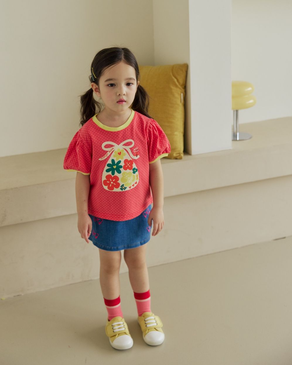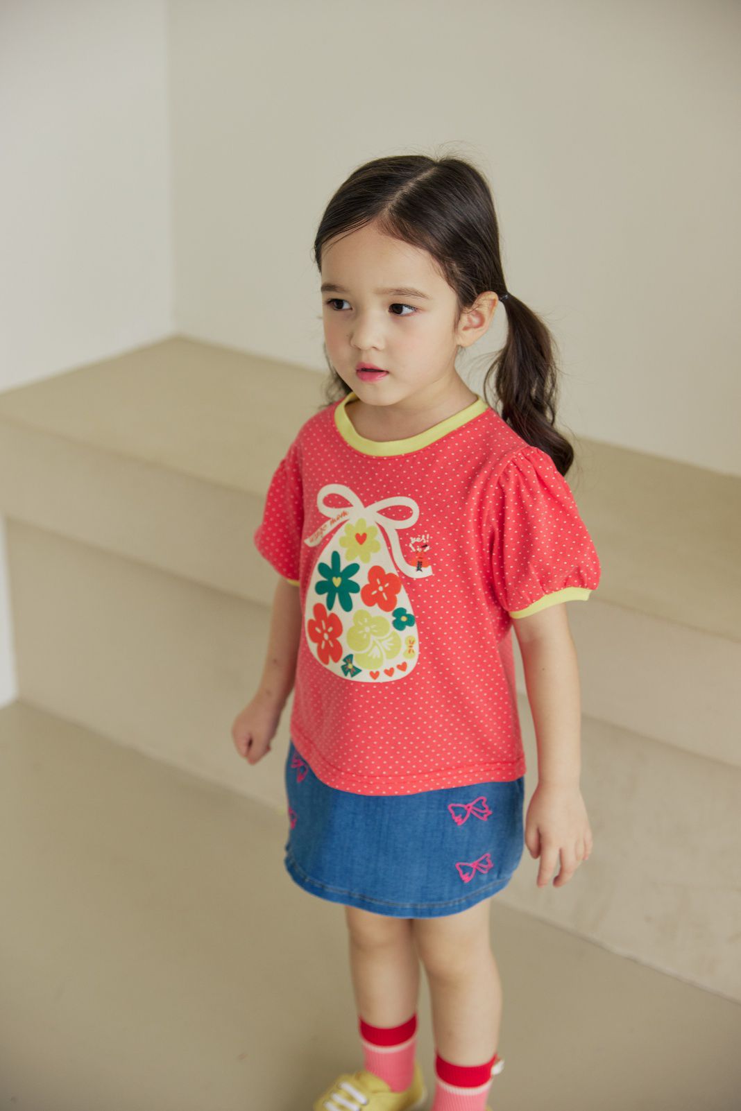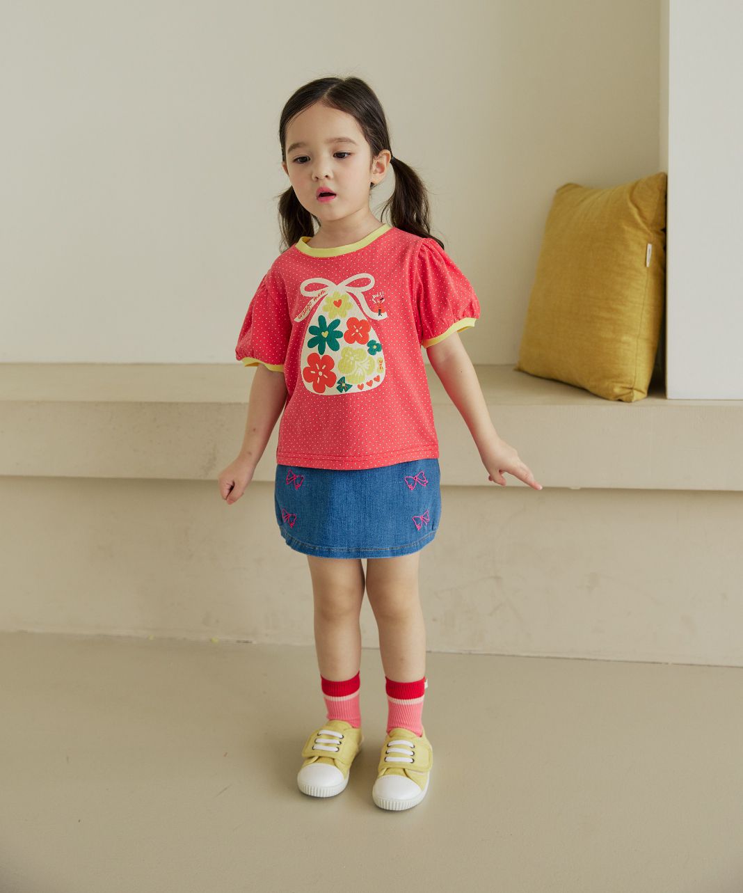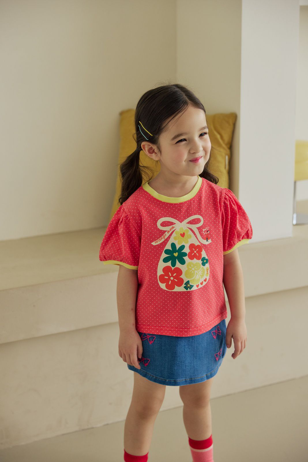 韓國 Orange Mom - 花花福袋點點泡泡袖上衣-紅