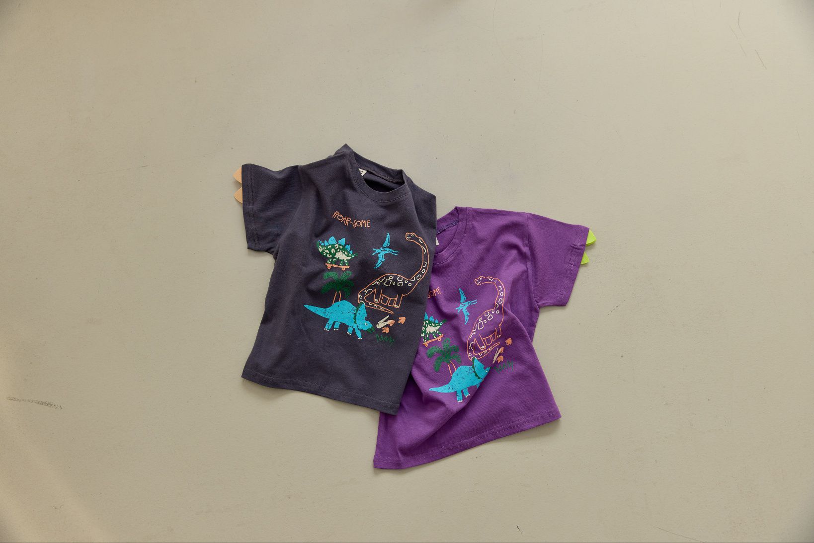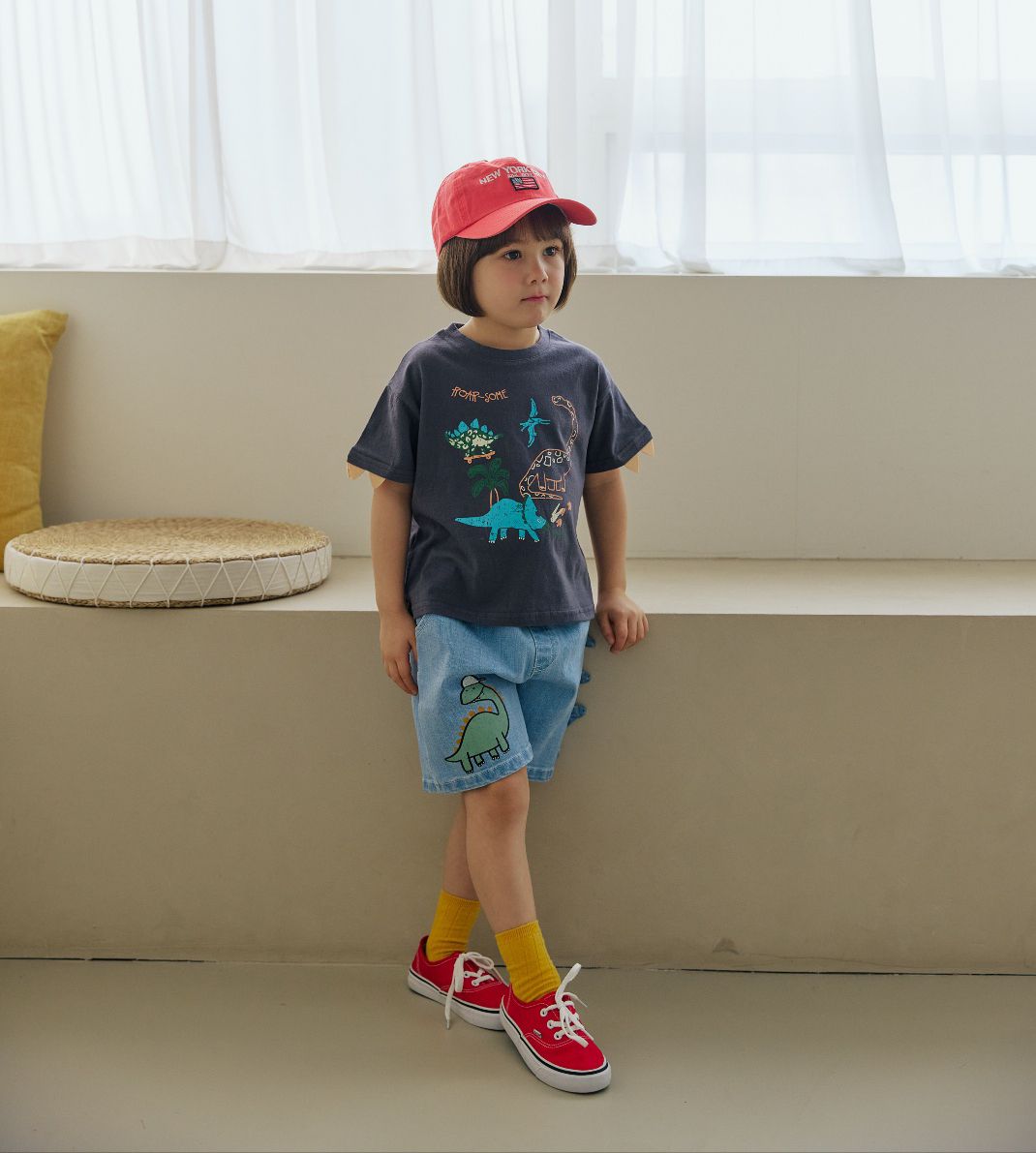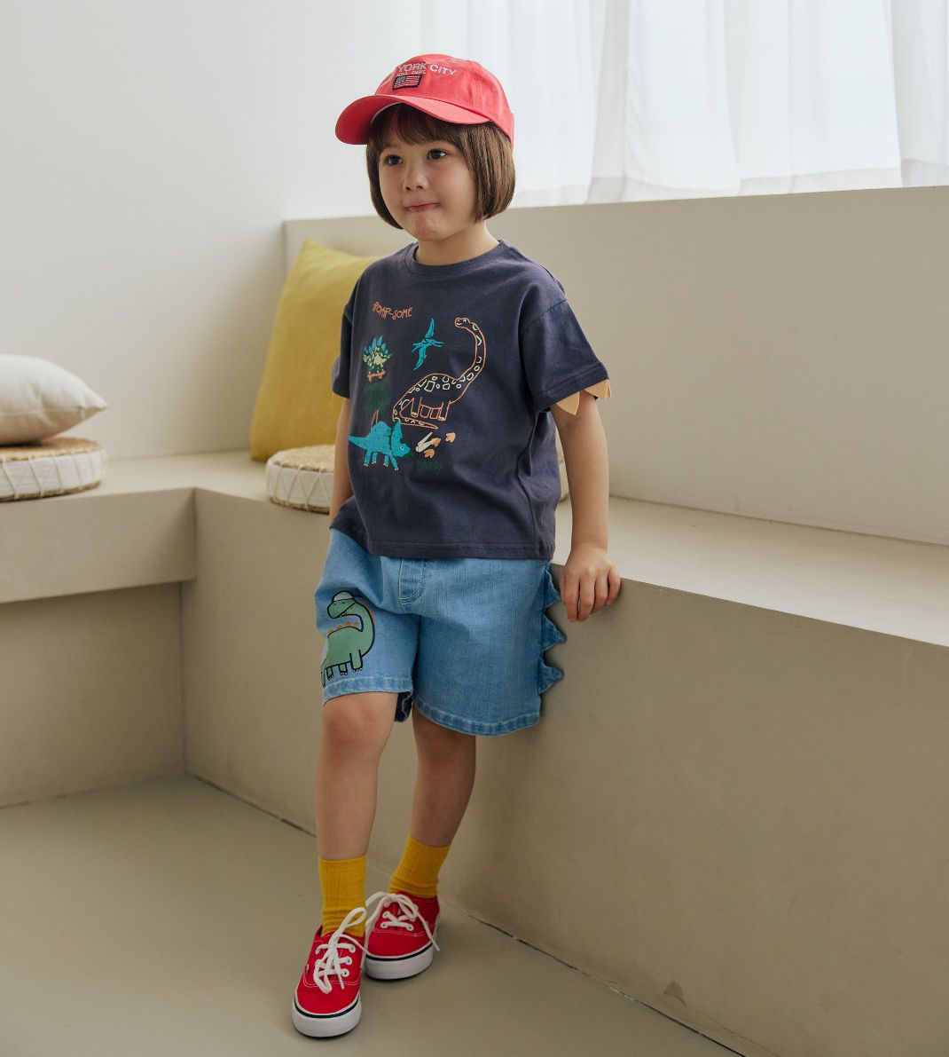 • 品名:塗鴉恐龍角角裝飾短袖上衣