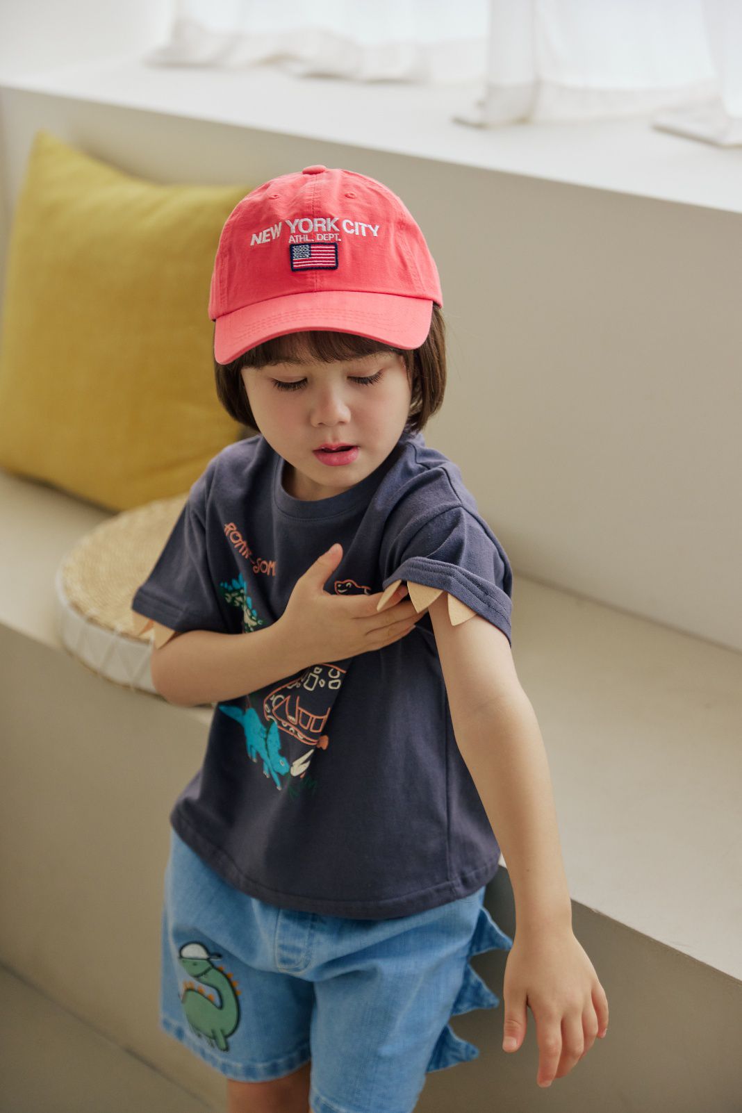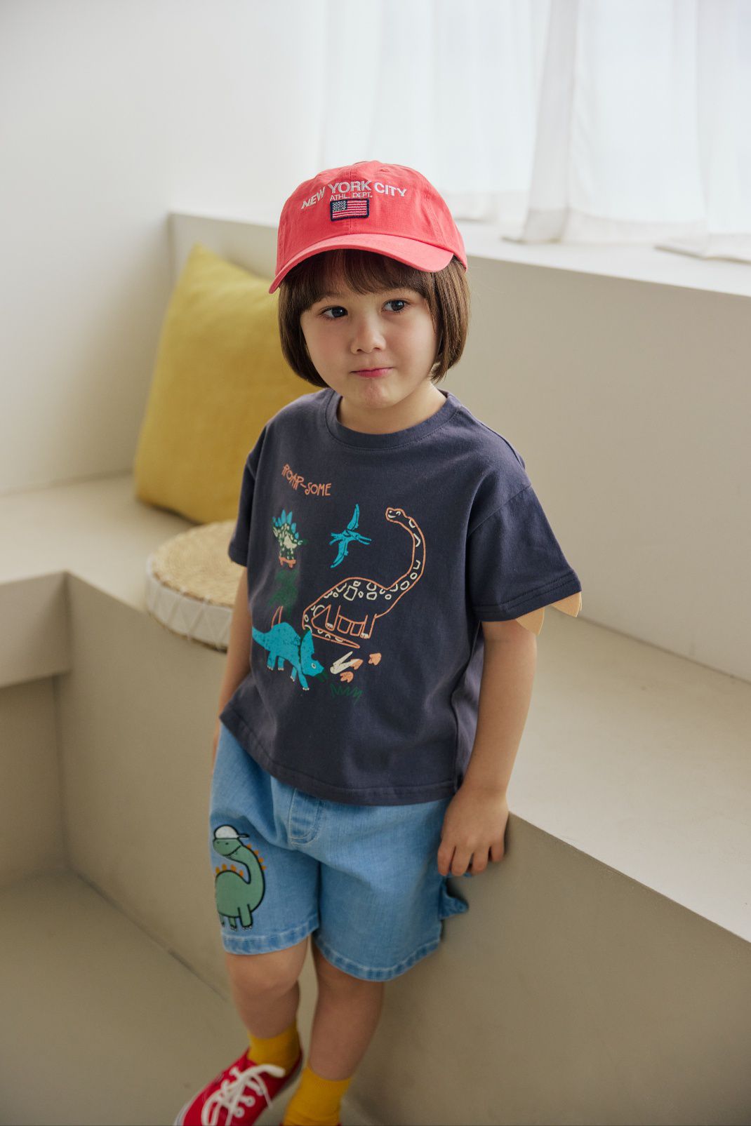 韓國 Orange Mom - 塗鴉恐龍角角裝飾短袖上衣-黑灰