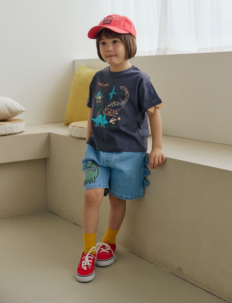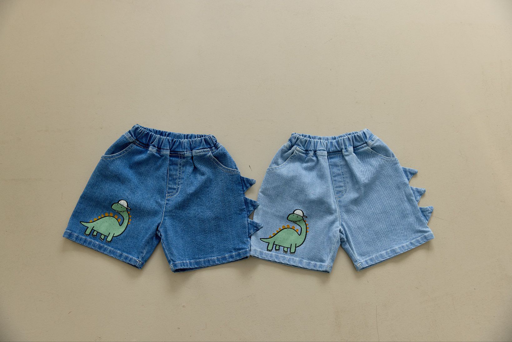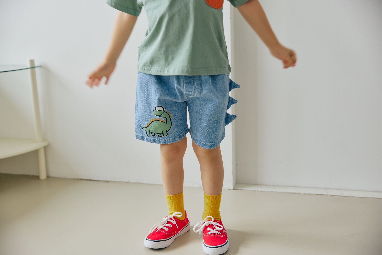 韓國 Orange Mom - 鬆緊腰恐龍角裝飾短褲-淺藍