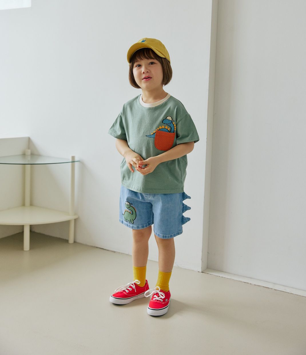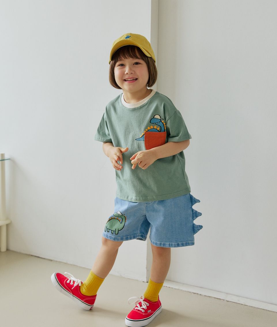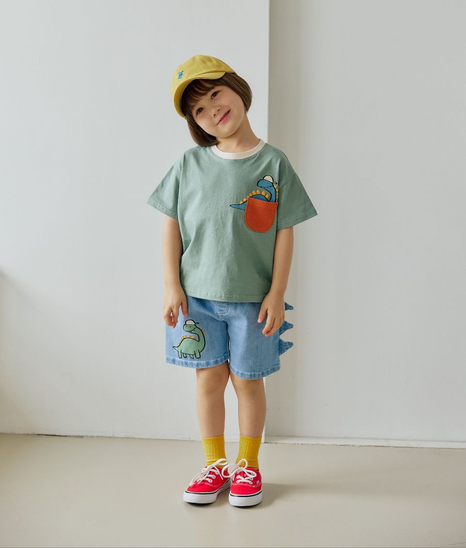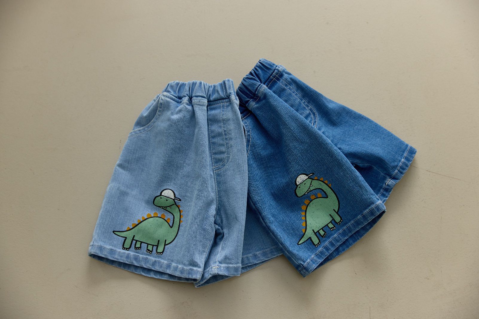韓國 Orange Mom - 鬆緊腰恐龍角裝飾短褲-淺藍