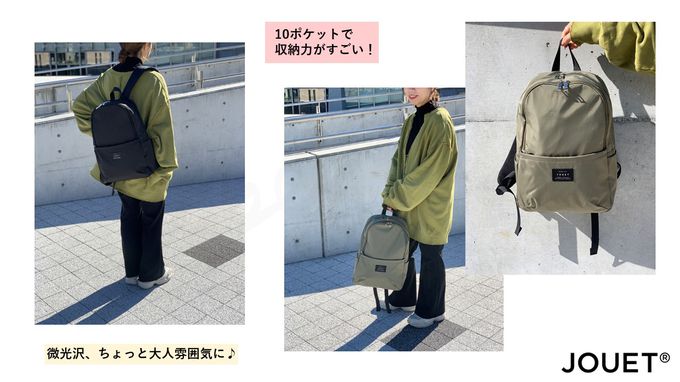 JOUET 10pocket微光澤休閒後背包-橄欖綠