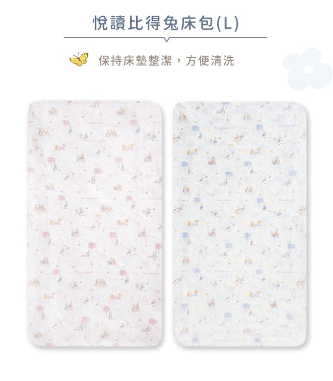 悅讀比得兔寢具系列為寶寶嚴選高密度精梳棉面料,搭配典雅圖紋設計,呈現活潑純真氣息,提供寶寶溫馨、舒適的睡眠環境。