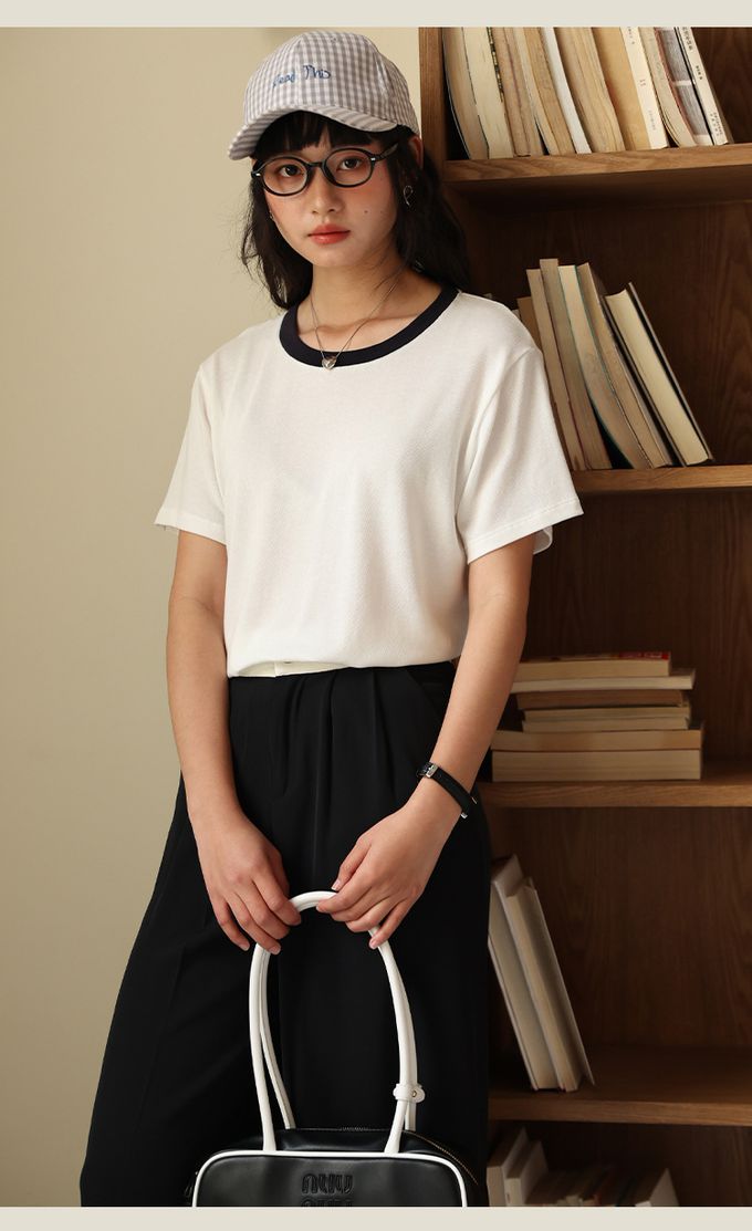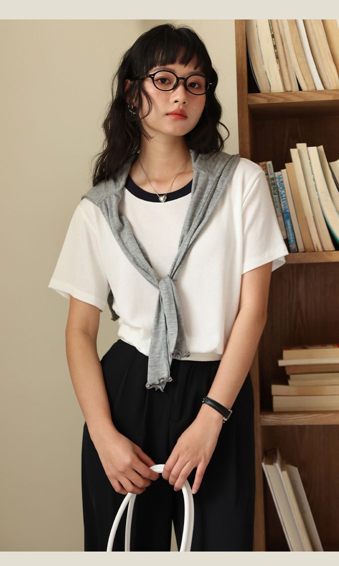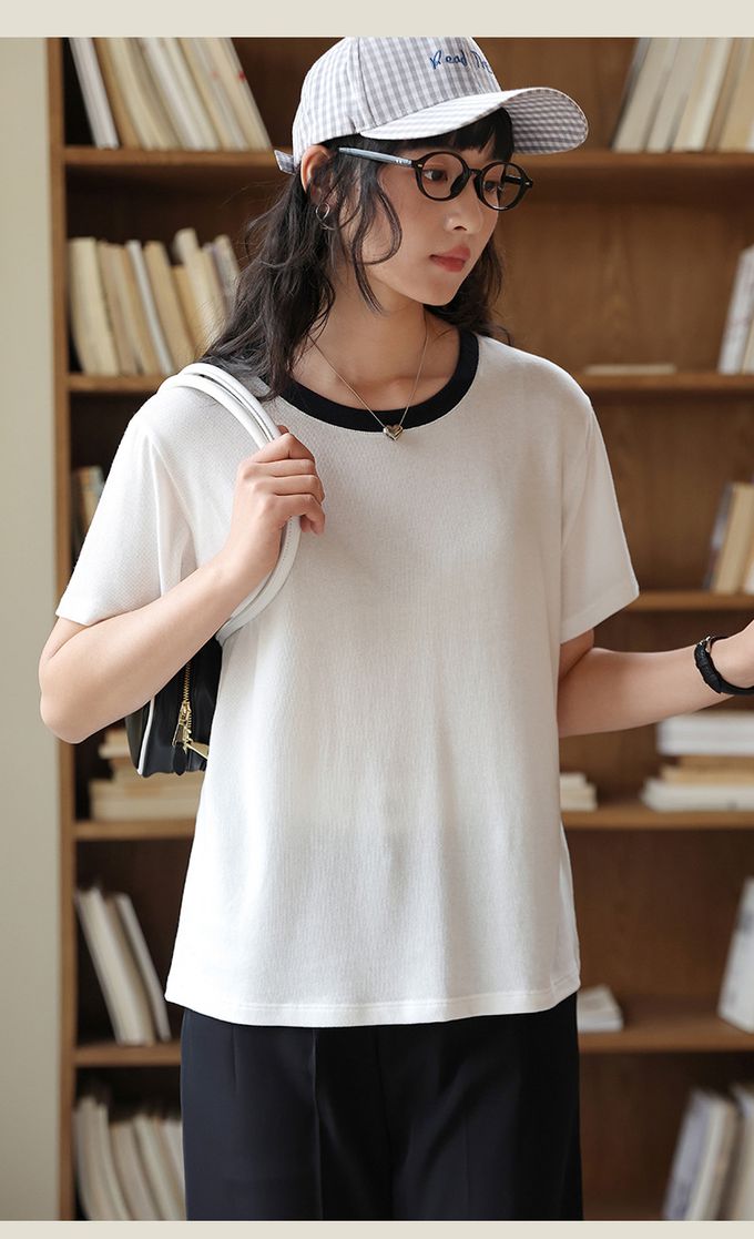 KPUWARM - 天絲亞麻撞色針織短袖上衣-條紋