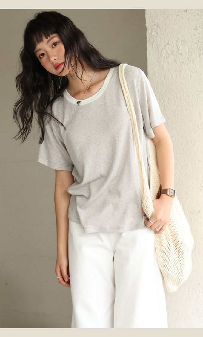 KPUWARM - 天絲亞麻撞色針織短袖上衣-條紋