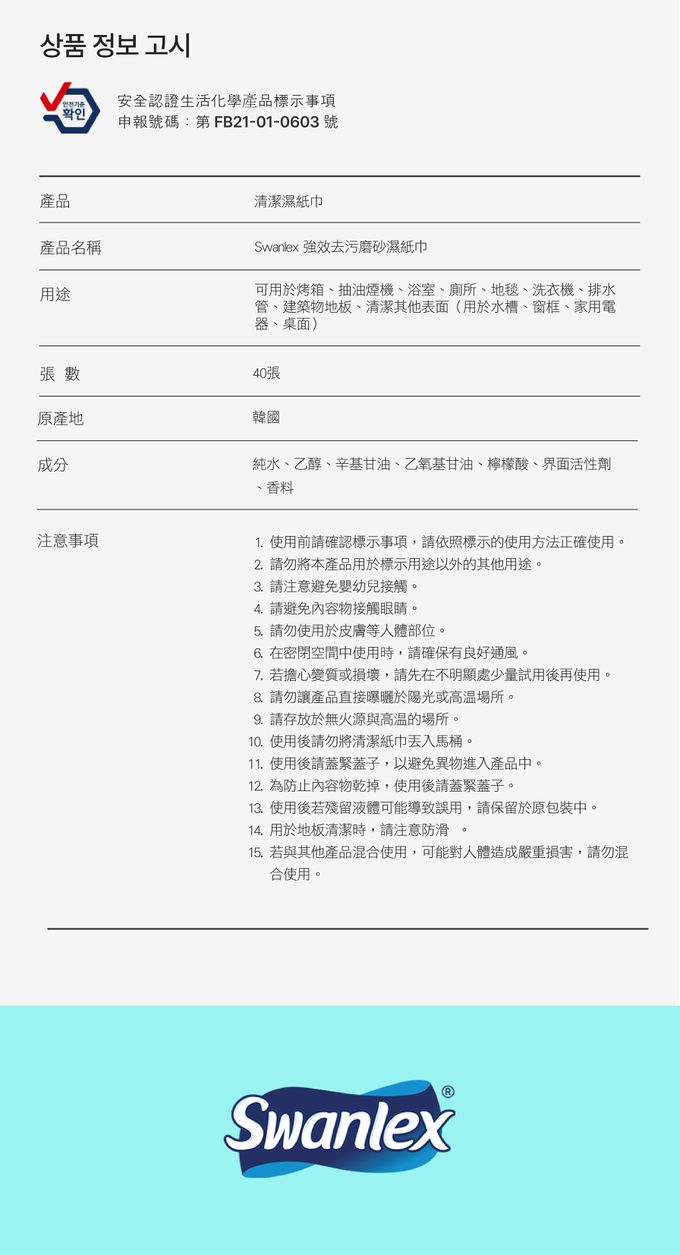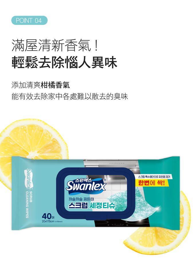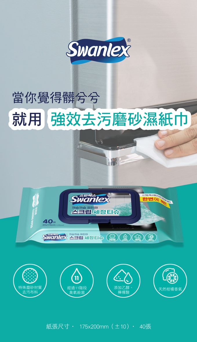 品名:Swanlex|強效去汙磨砂濕紙巾40抽