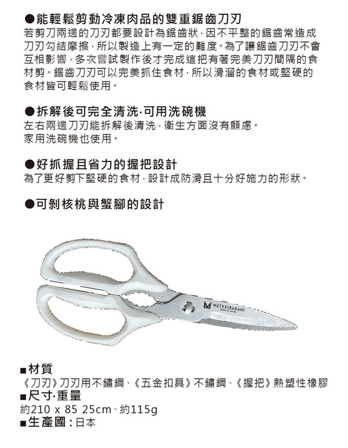 品名:日本製 可拆式無敵料理剪刀(可剪冷凍肉品)
