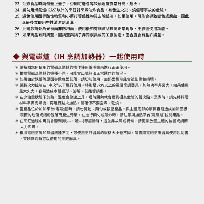 適用: 各種爐具含電磁爐、IH爐、瓦斯爐、電熱爐、黑晶爐、電陶爐、鹵素爐