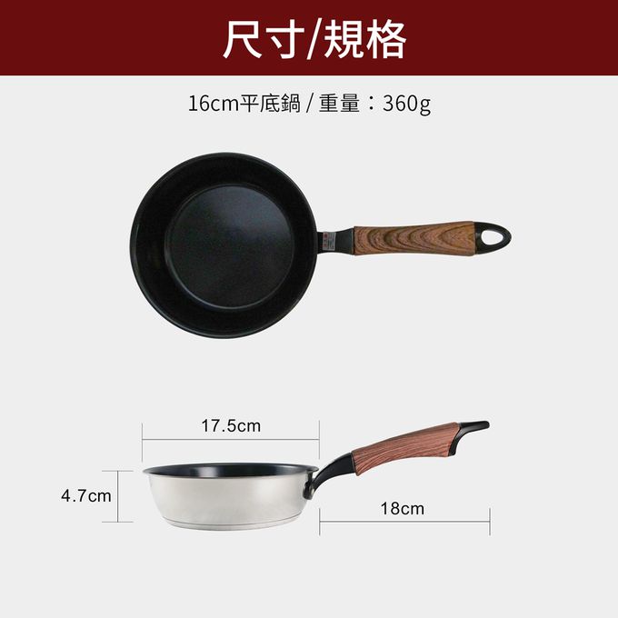 尺寸: 內徑16cm、外徑17.5cm、高4.7cm、柄長18cm、全長34cm