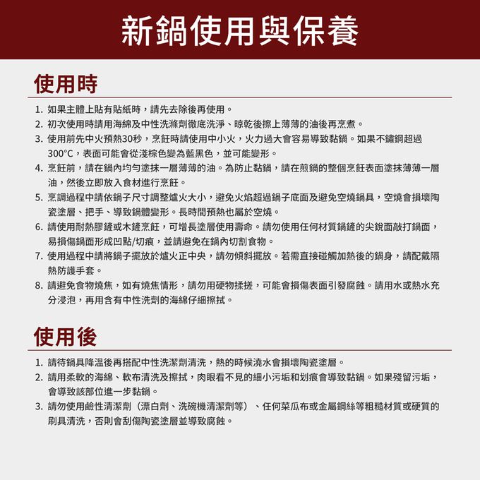 • 極佳的保溫性、導熱快,中小火即可烹飪