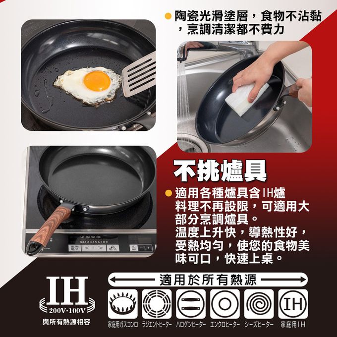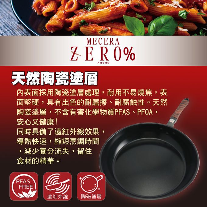 • 品名:Mecera Zero陶瓷IH三層複合金不沾平底鍋系列
