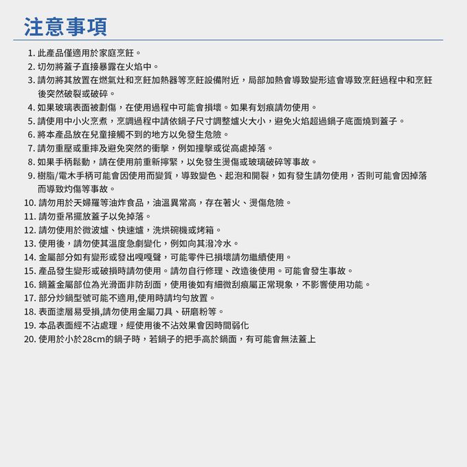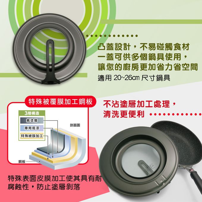 材質:鋁合金加工鋼板(氟樹脂不沾塗層加工)/ 強化玻璃 / 電木手柄 (耐熱140度)