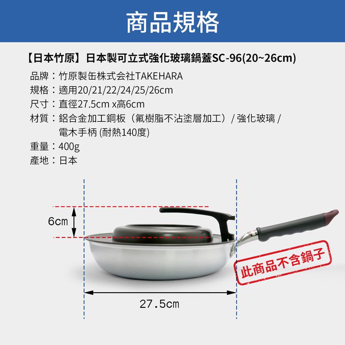 品名:日本製可立式強化玻璃鍋蓋SC-96(20~26cm)