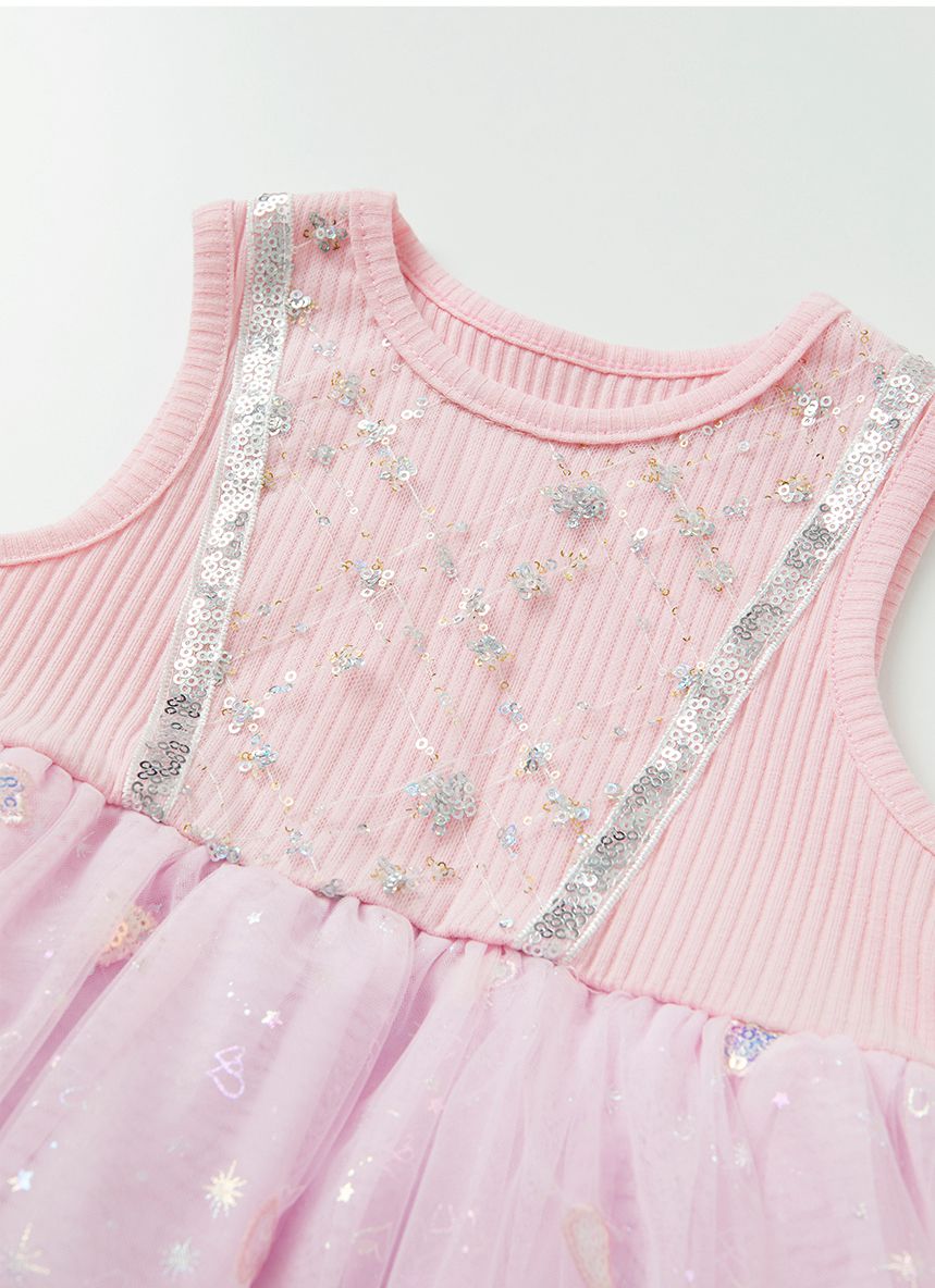 韓國 OZKIZ - 星銀網紗公主背心洋裝-粉
