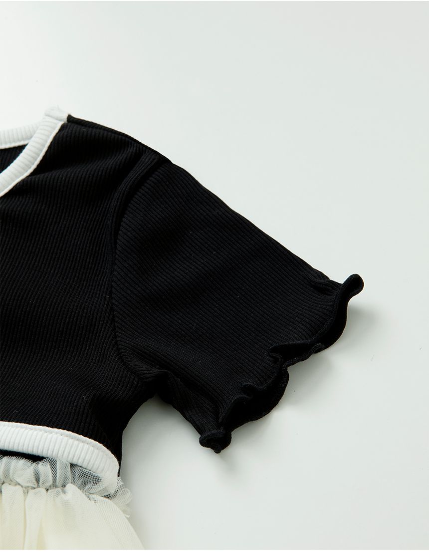 韓國 OZKIZ - 典雅小香風拼接網紗洋裝-黑X白