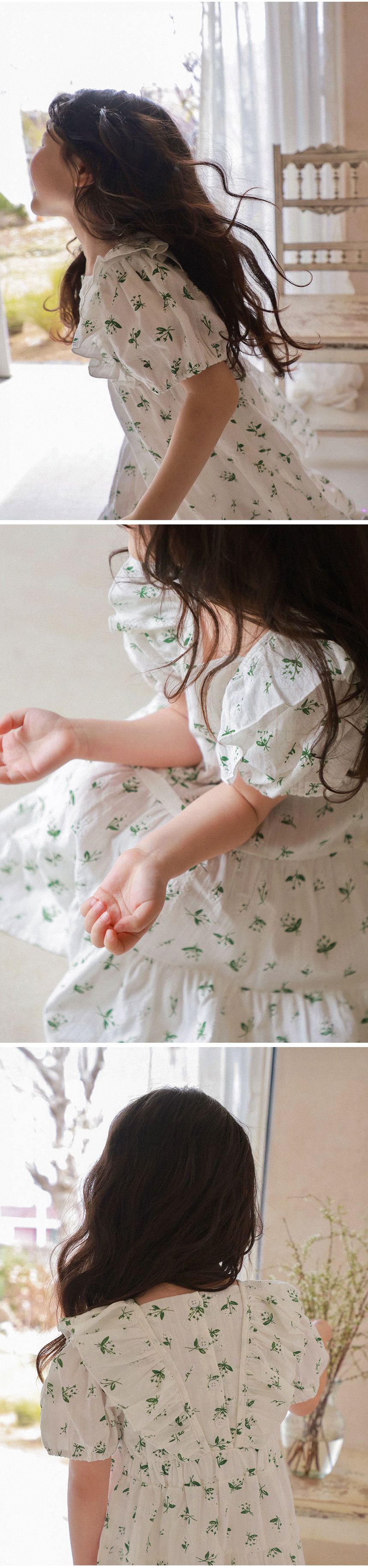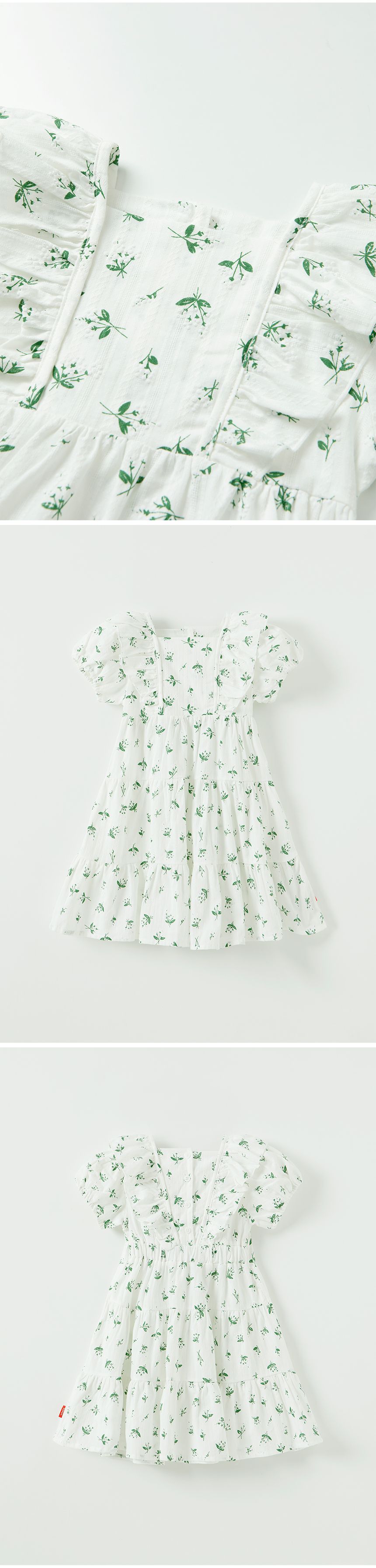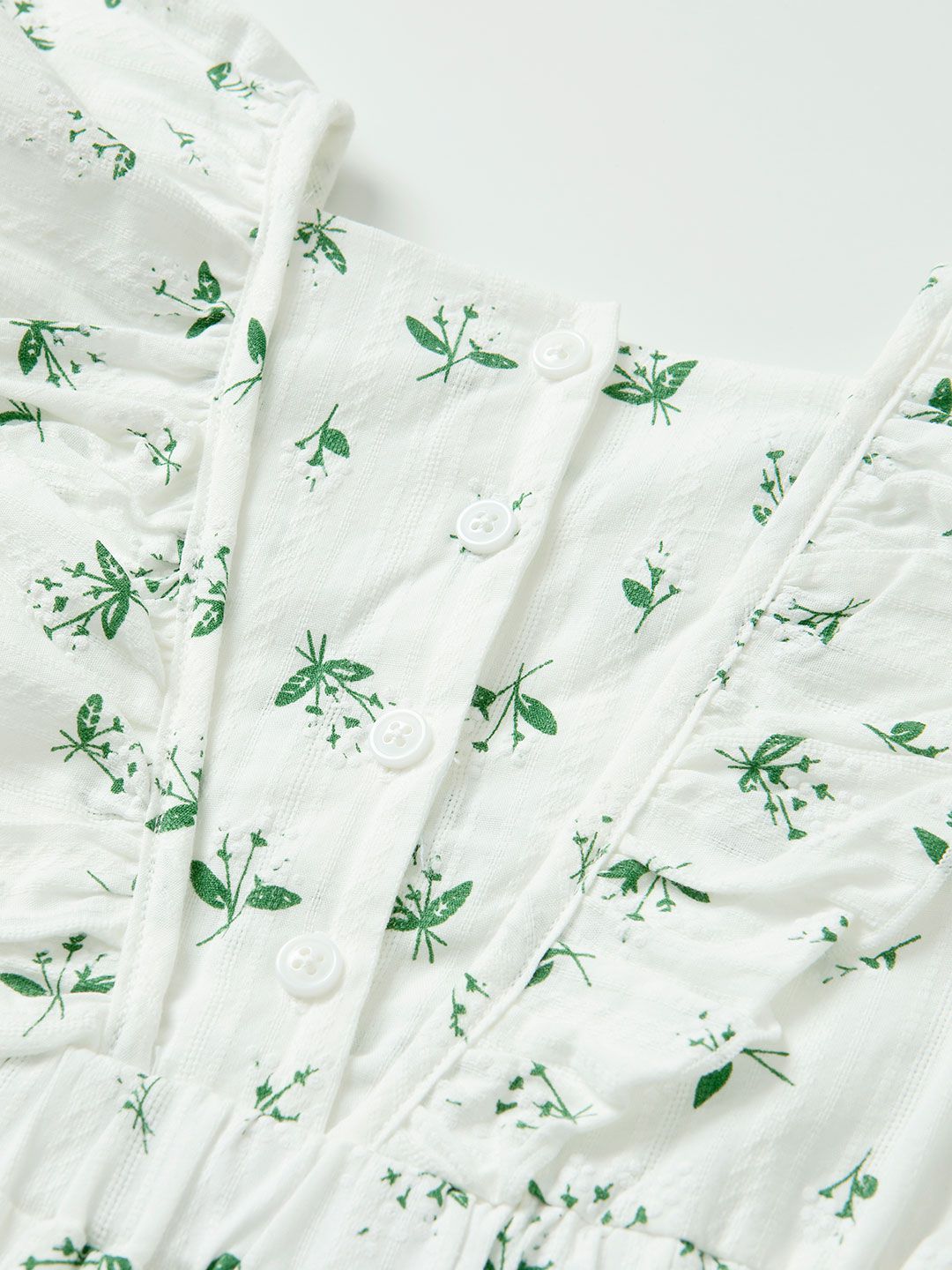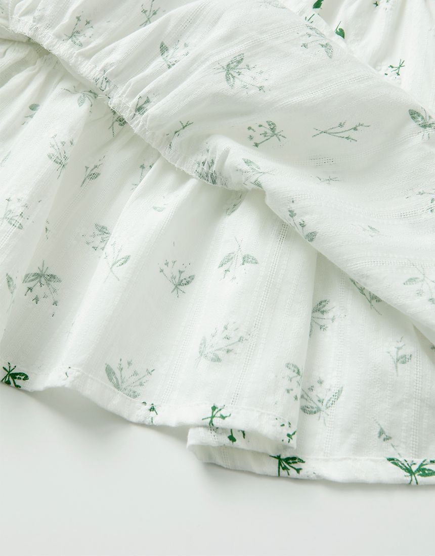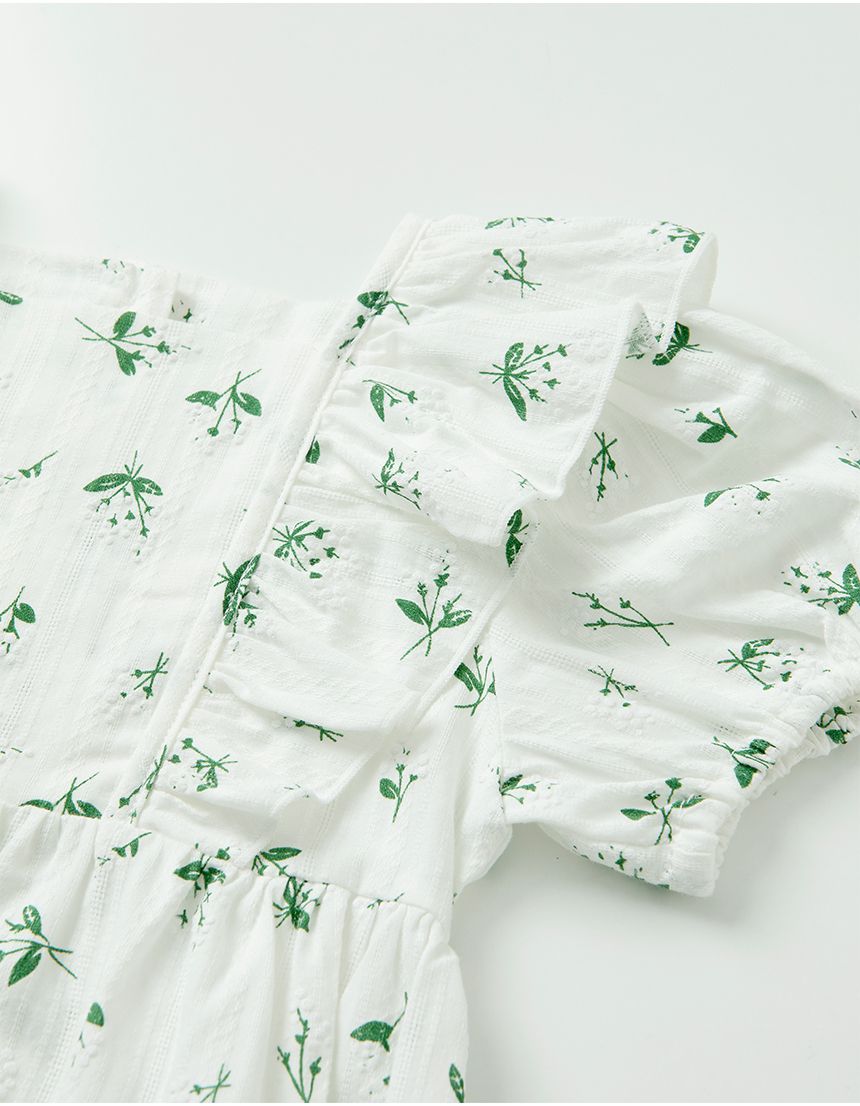 • 品名:清新白花點葉紋泡泡袖洋裝