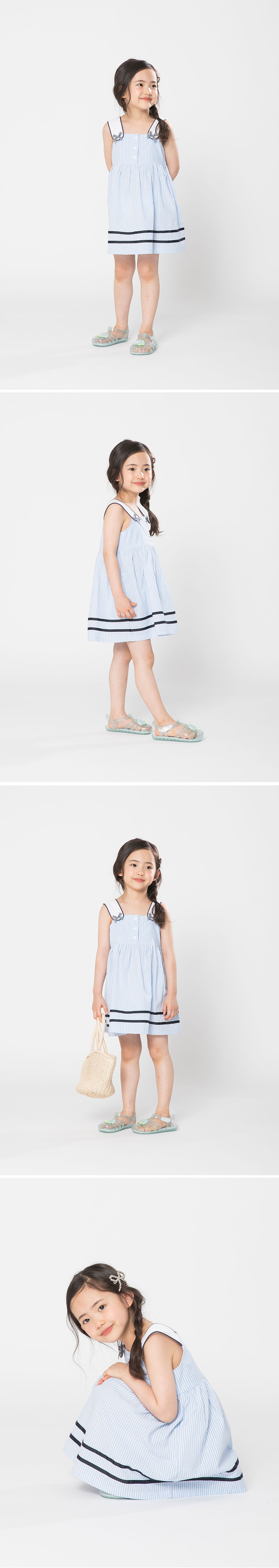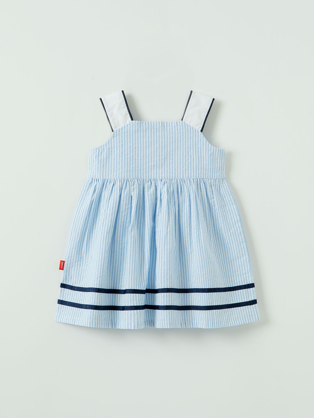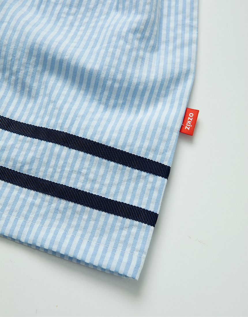 韓國 OZKIZ - 清新學院風直紋寬肩帶洋裝-天藍