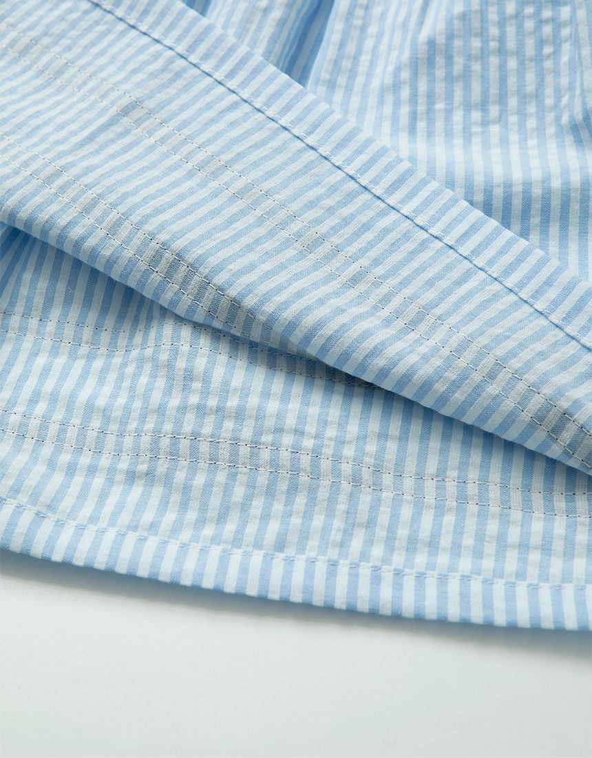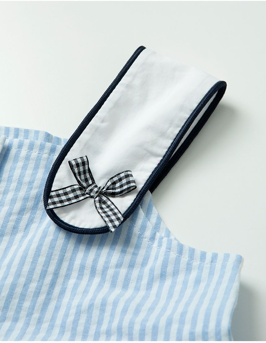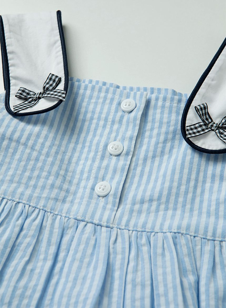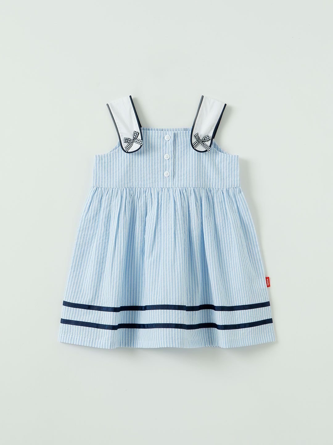 韓國 OZKIZ - 清新學院風直紋寬肩帶洋裝-天藍