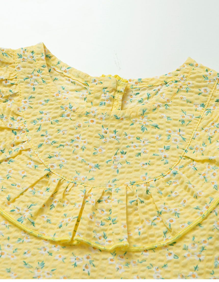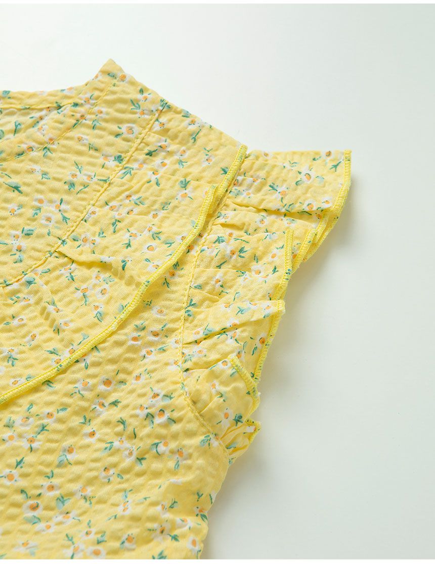 韓國 OZKIZ - 碎花荷葉花邊點綴壓紋洋裝-黃