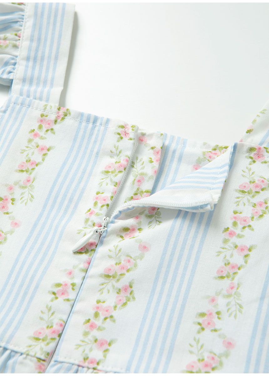 • 品名:(附帽子)清爽碎花直紋細肩帶洋裝