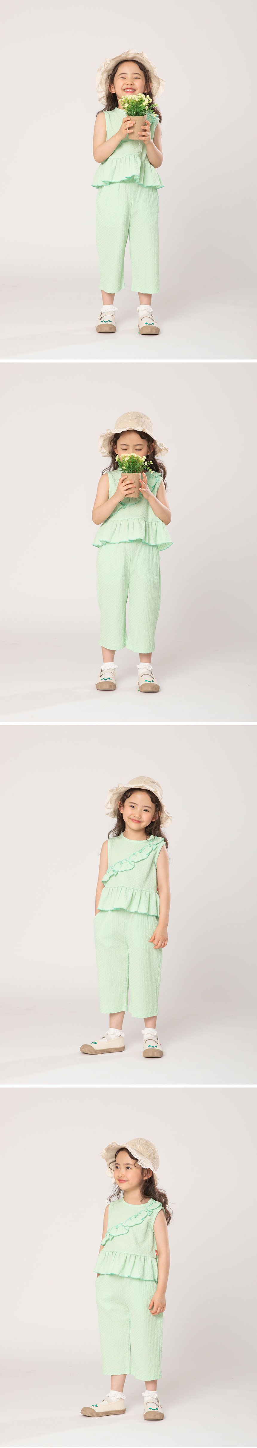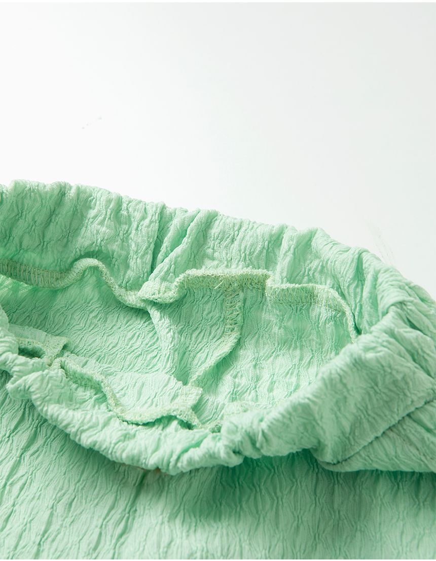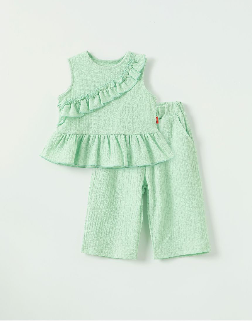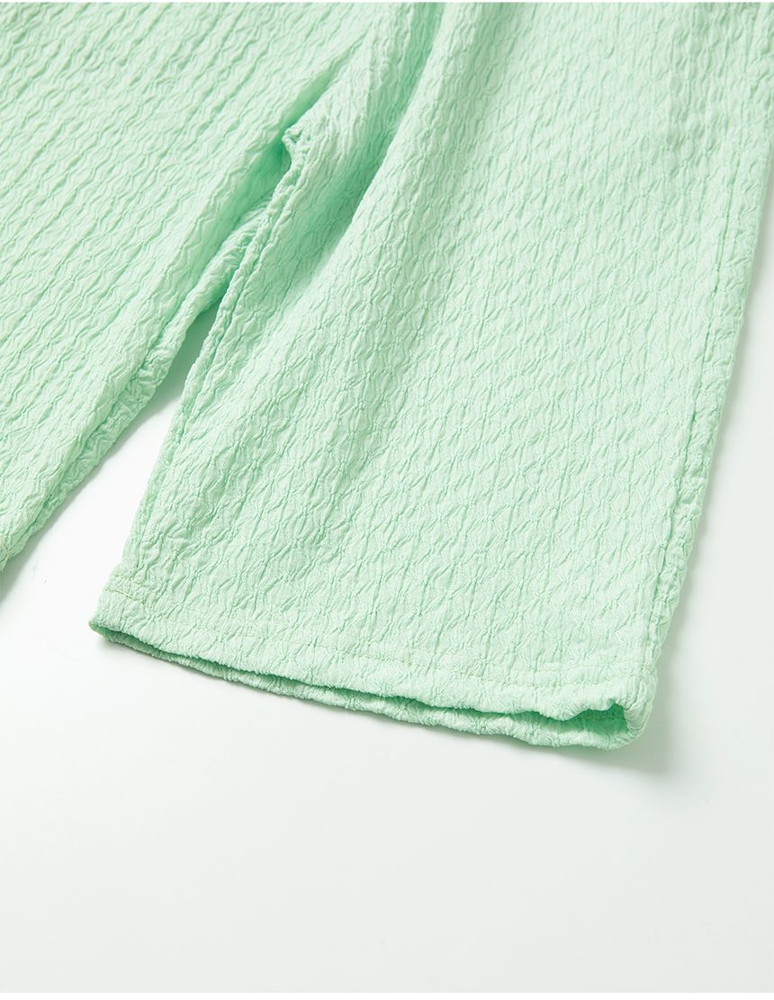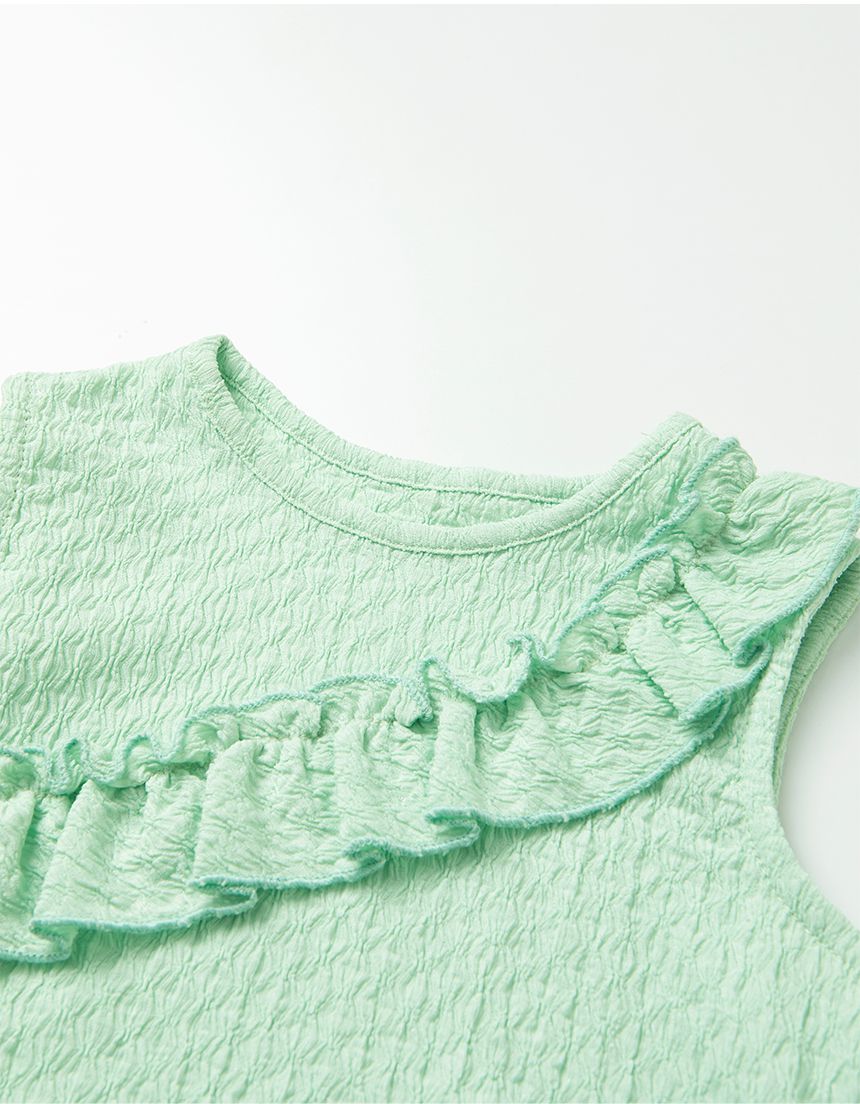 韓國 OZKIZ - 夏日滾邊裝飾壓紋背心X七分褲套裝-淺綠