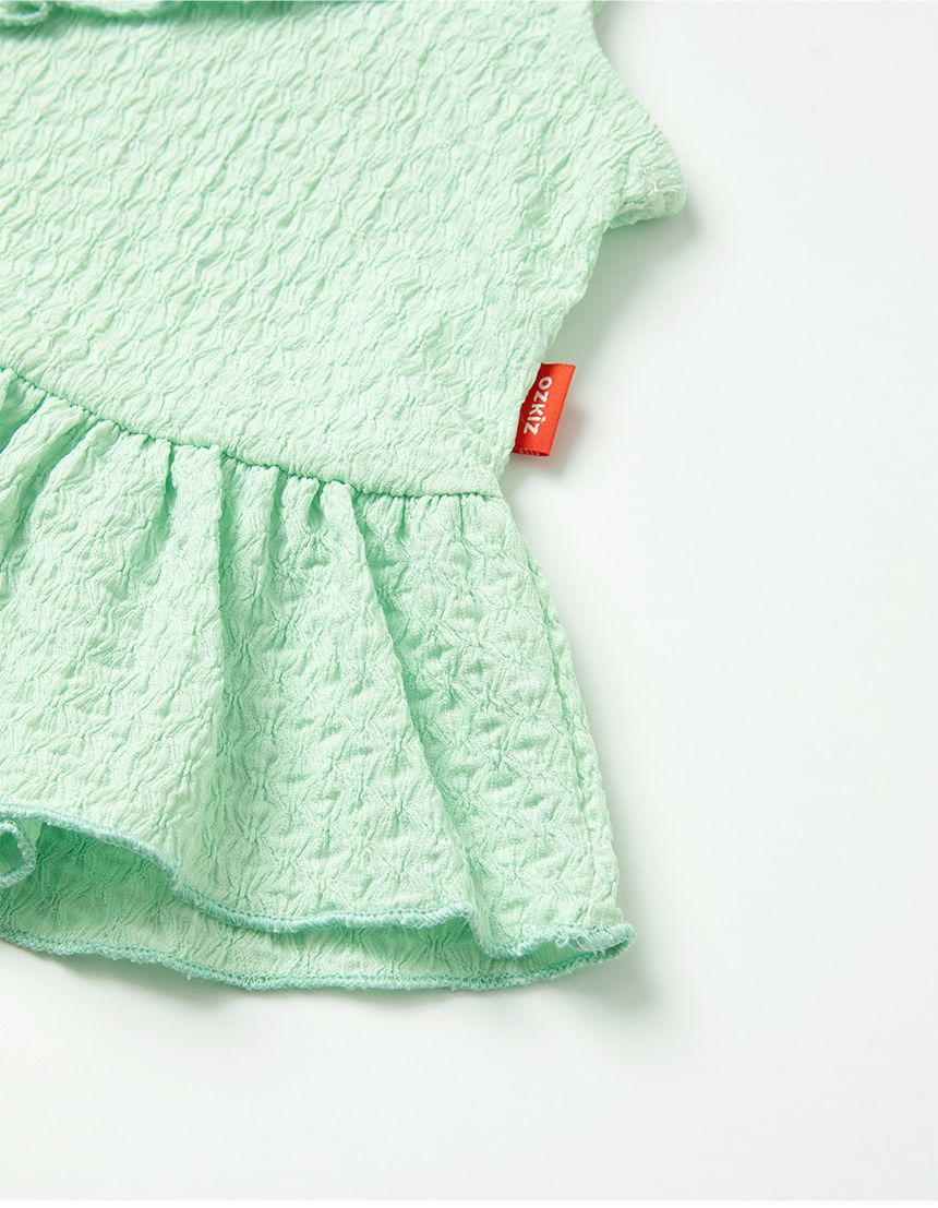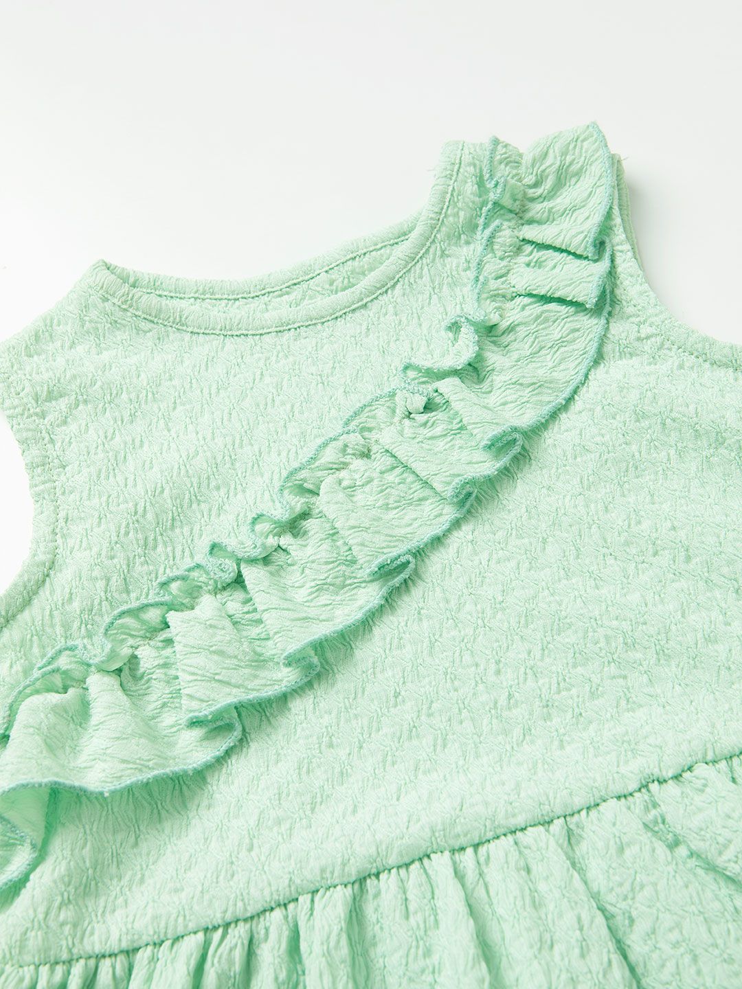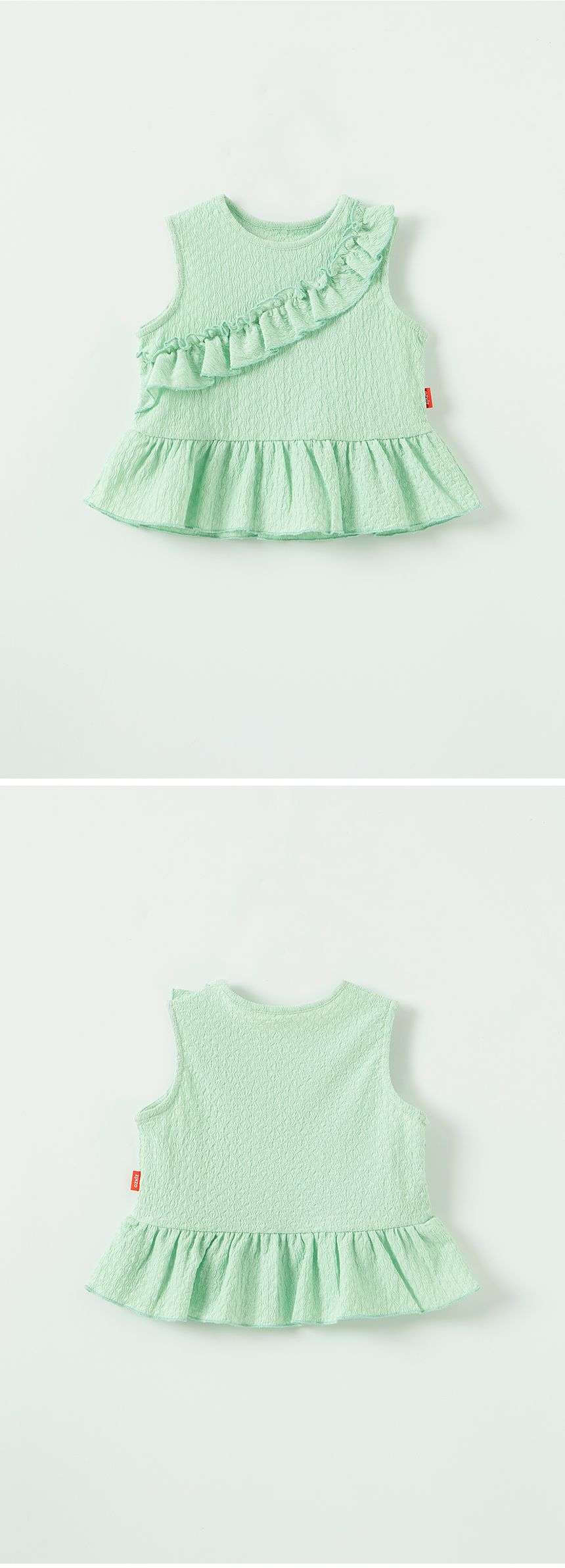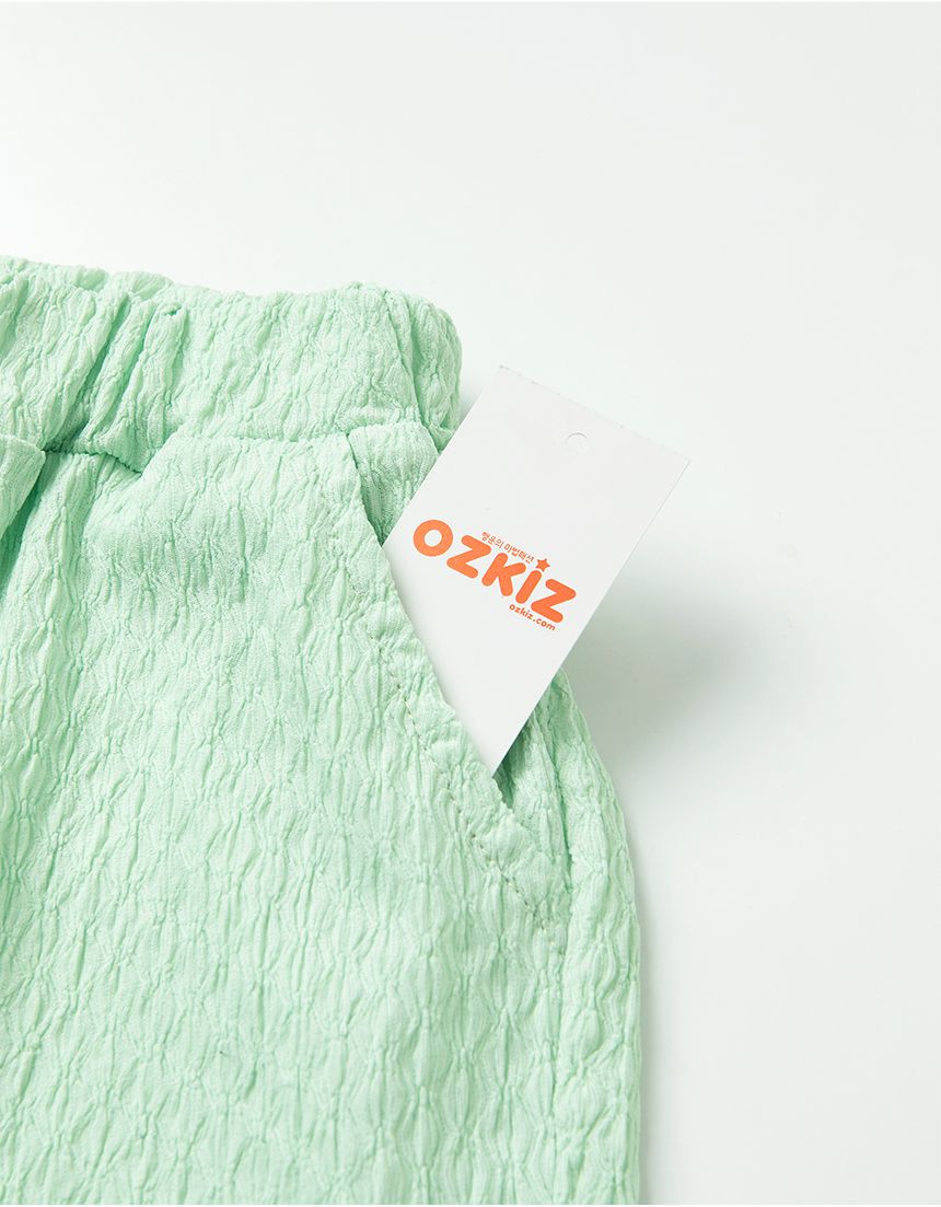 韓國 OZKIZ - 夏日滾邊裝飾壓紋背心X七分褲套裝-淺綠