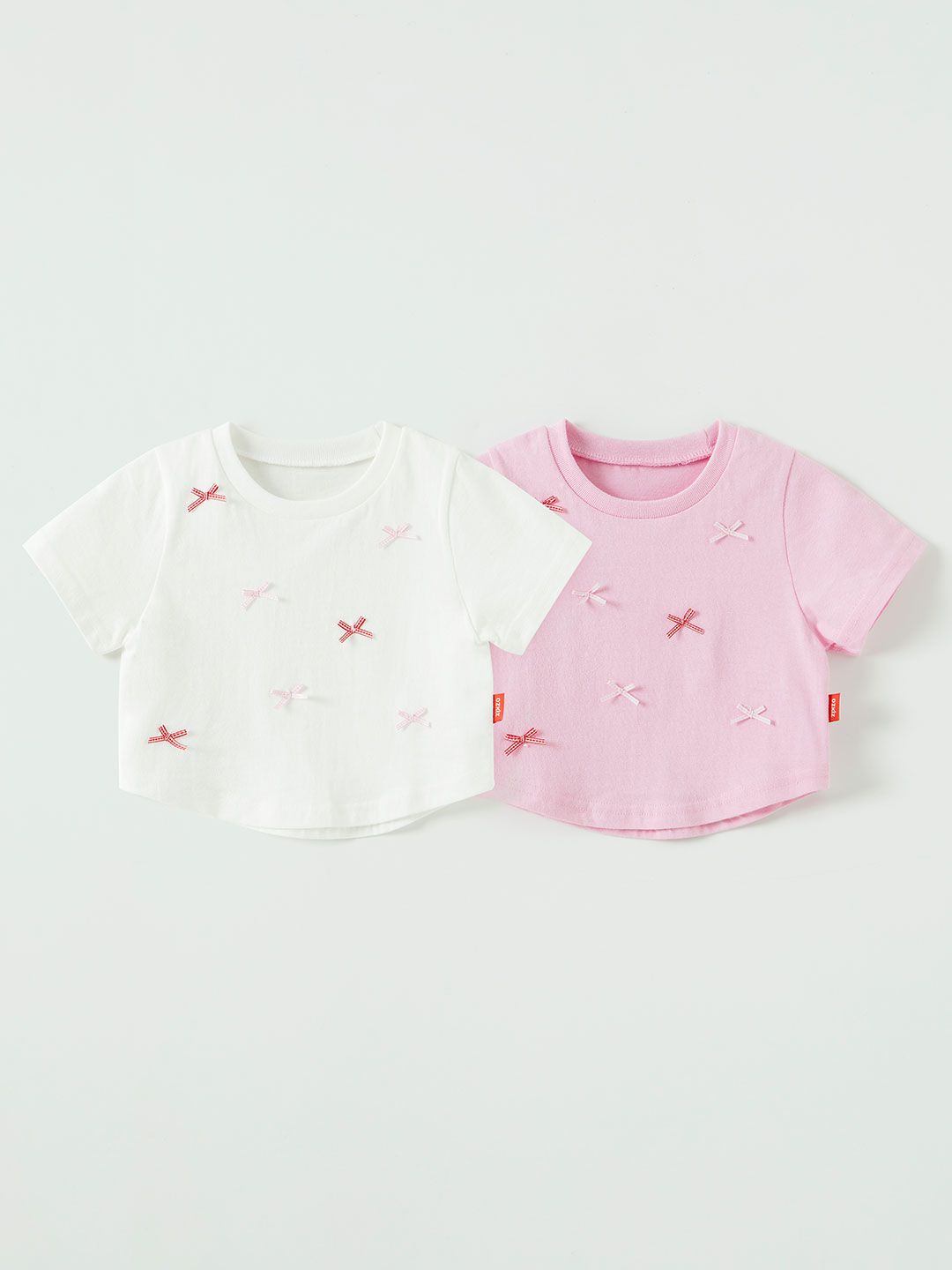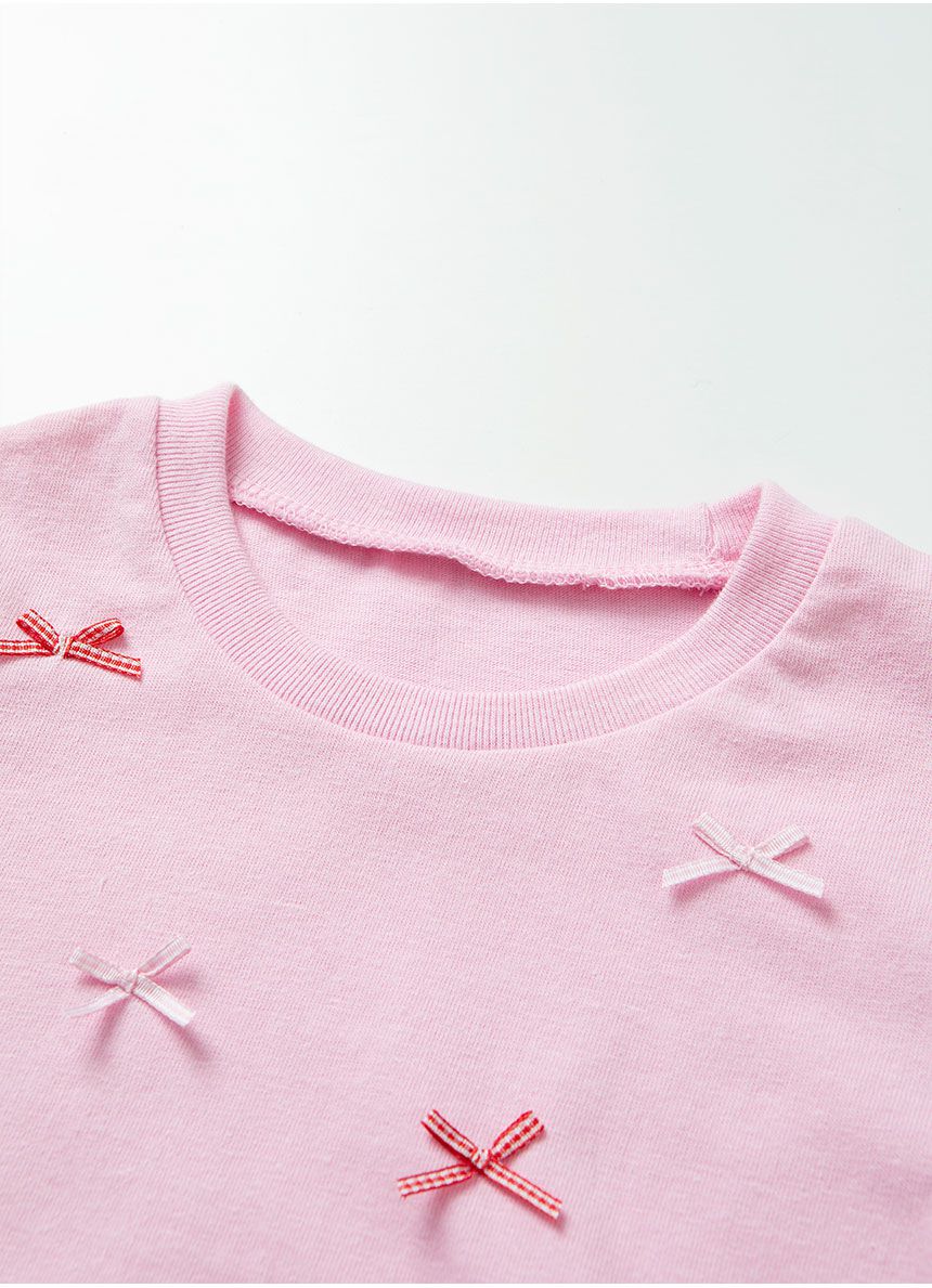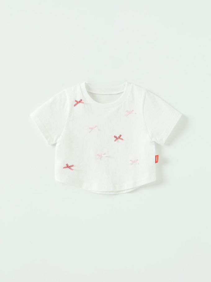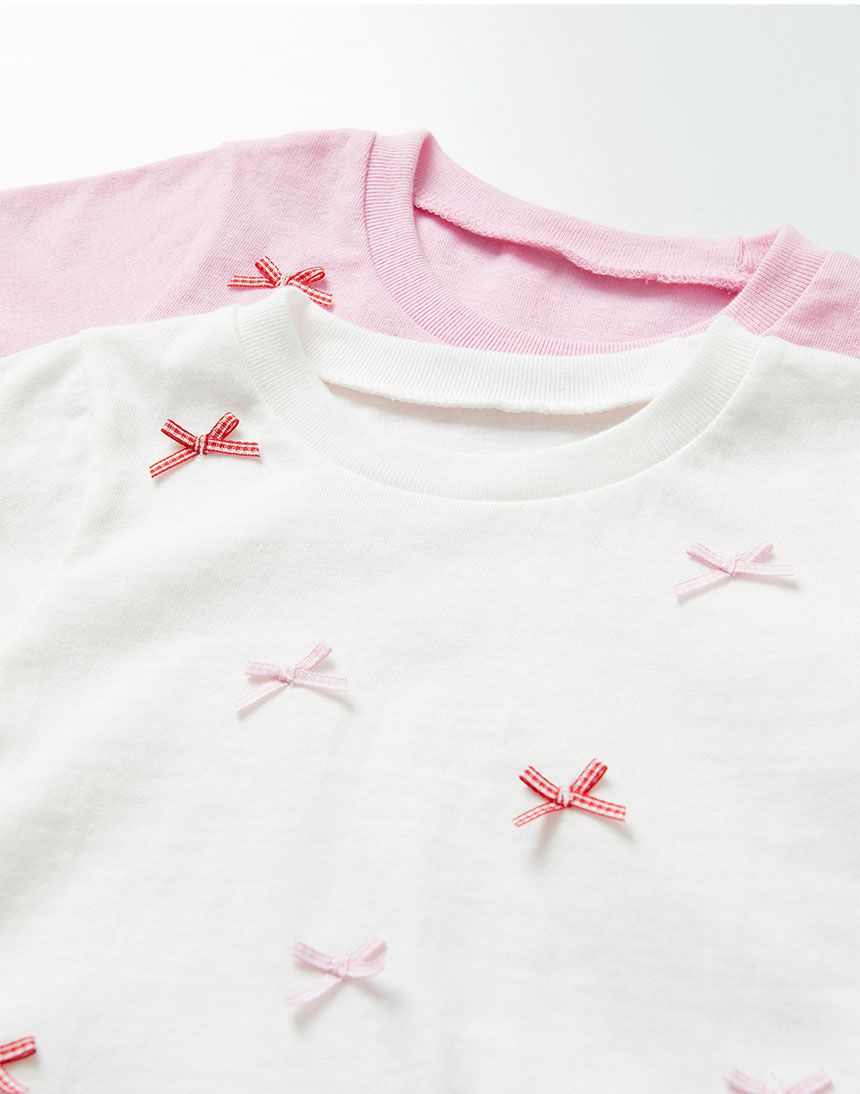 韓國 OZKIZ - 格紋蝴蝶結飾短袖上衣-白