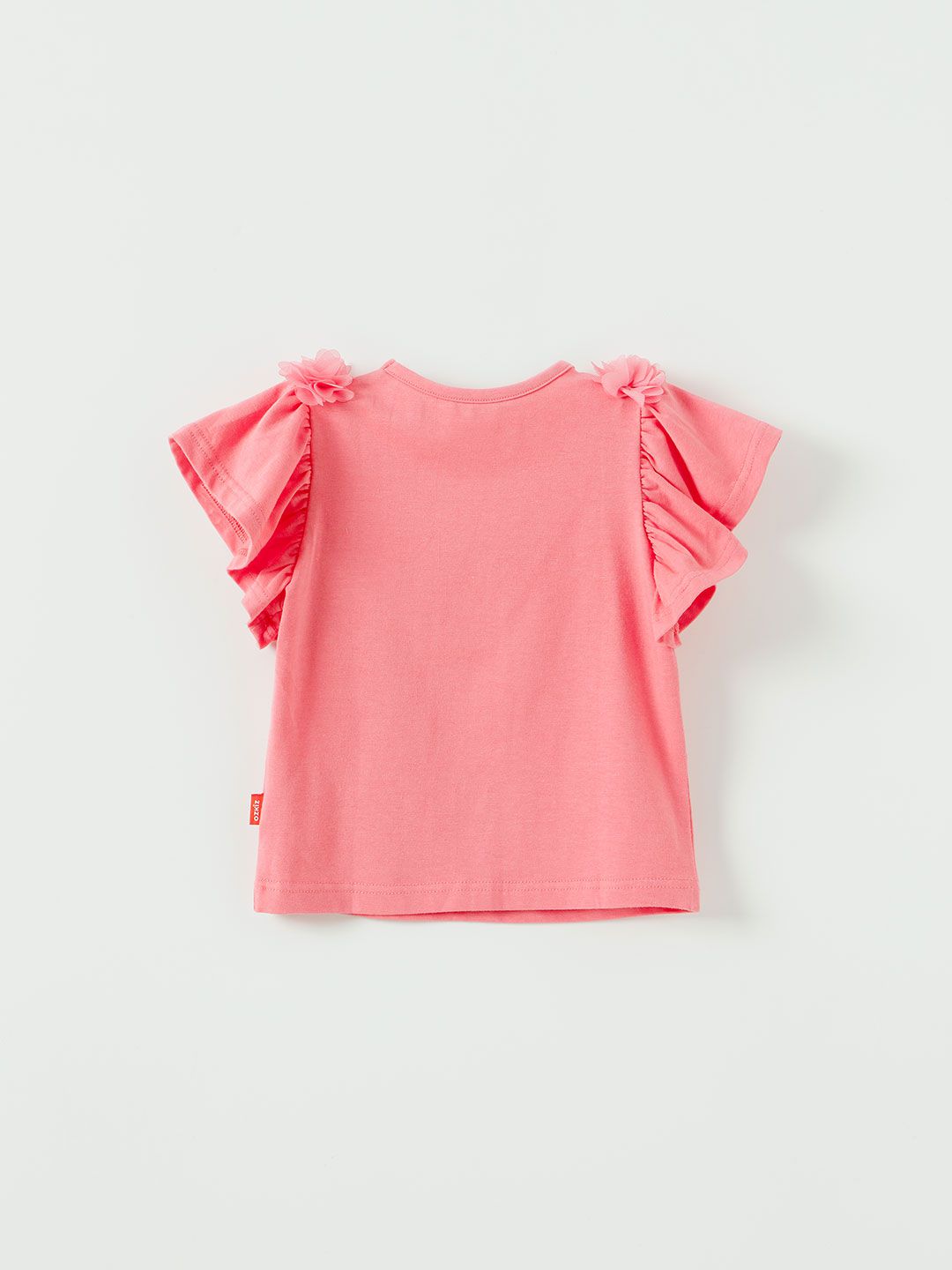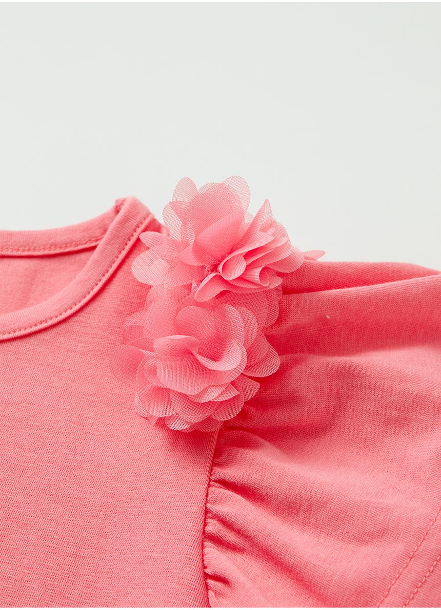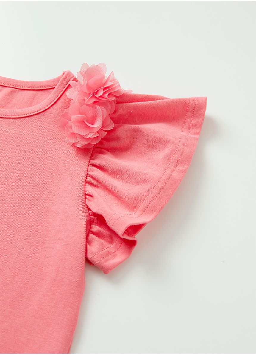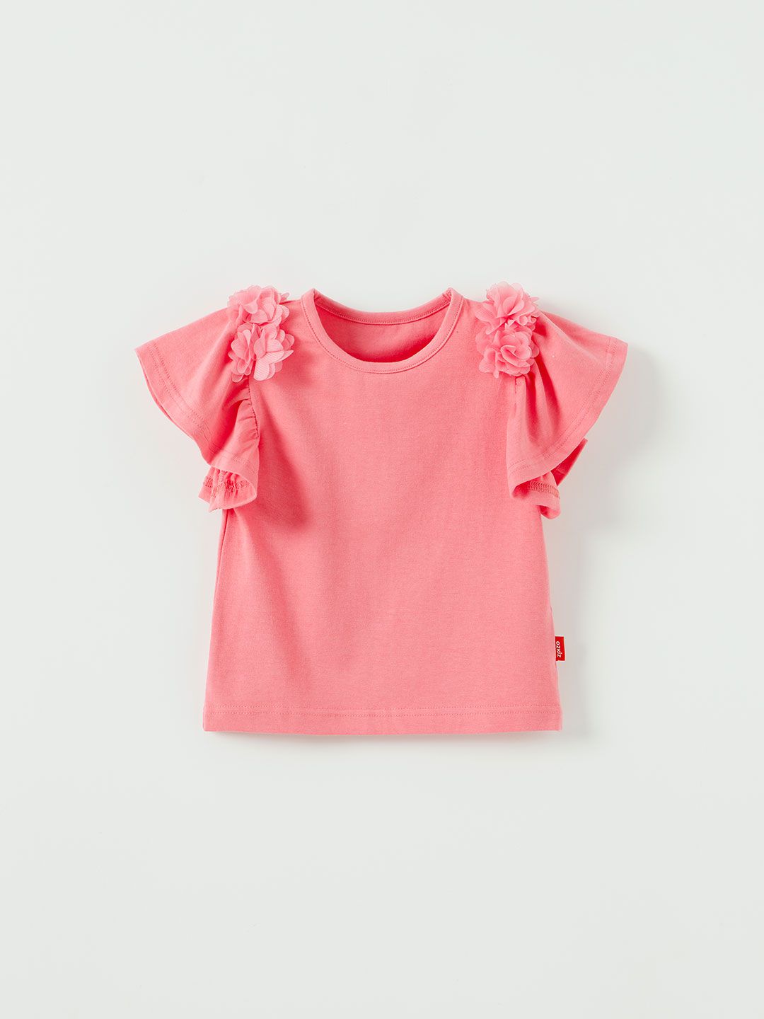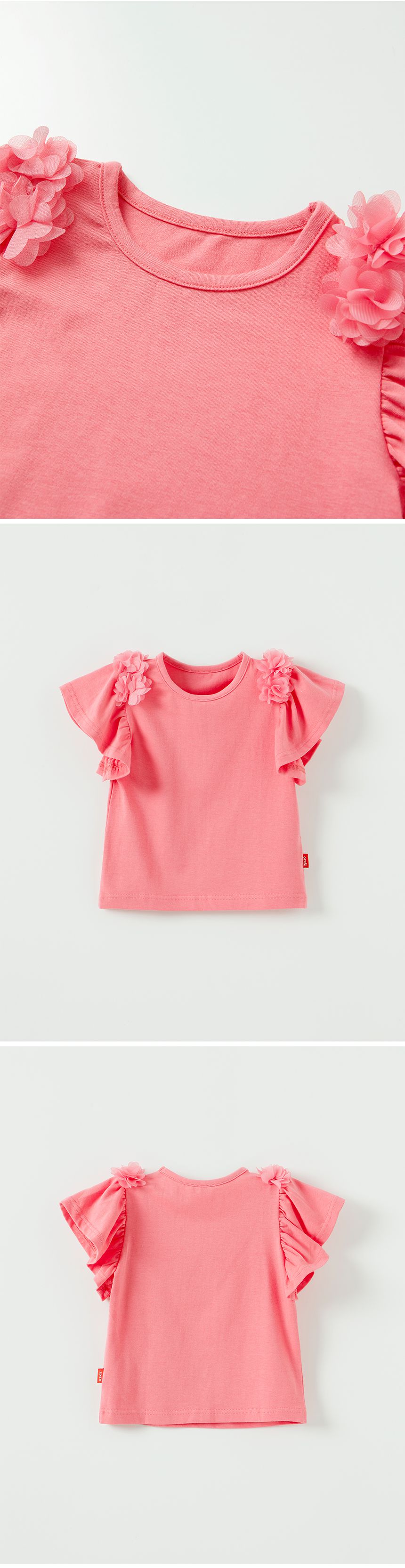 韓國 OZKIZ - 立體花瓣裝飾喇叭袖上衣-蜜桃橘粉
