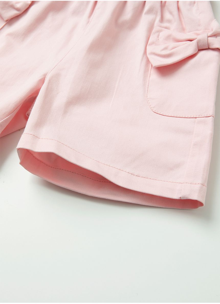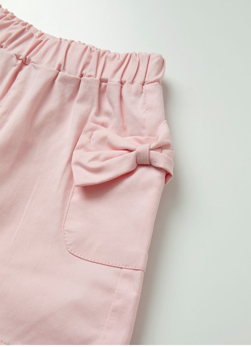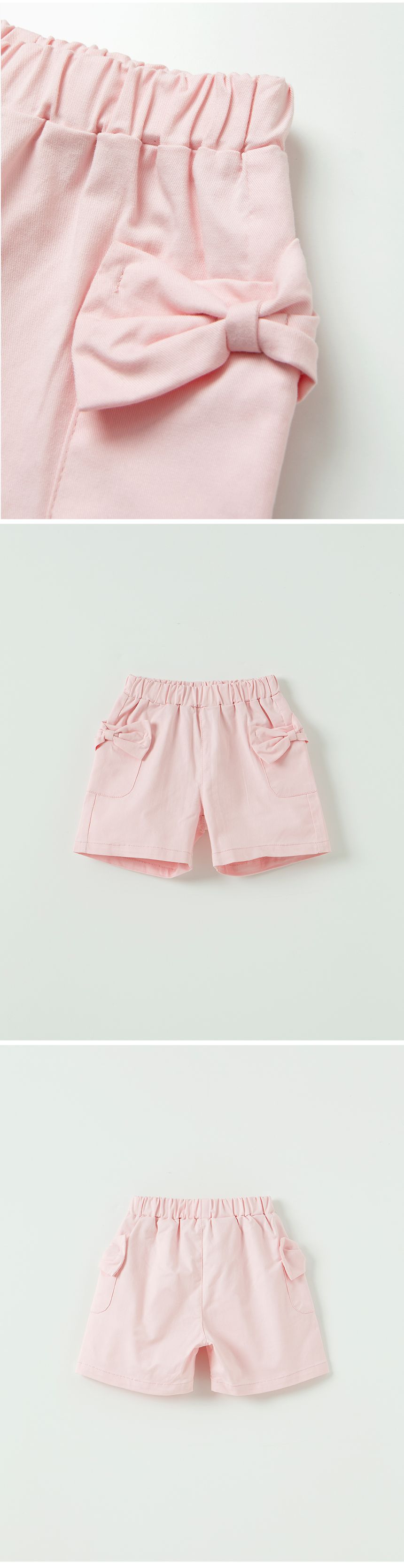 韓國 OZKIZ - 鬆緊腰蝴蝶結裝飾口袋短褲-淺粉