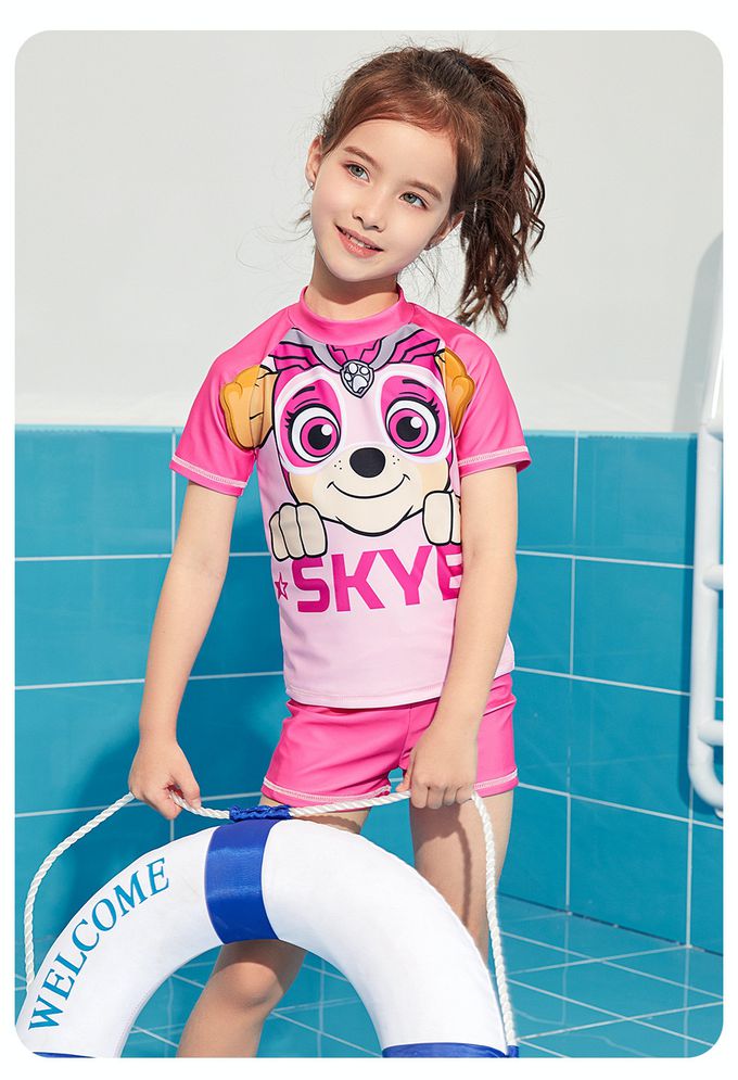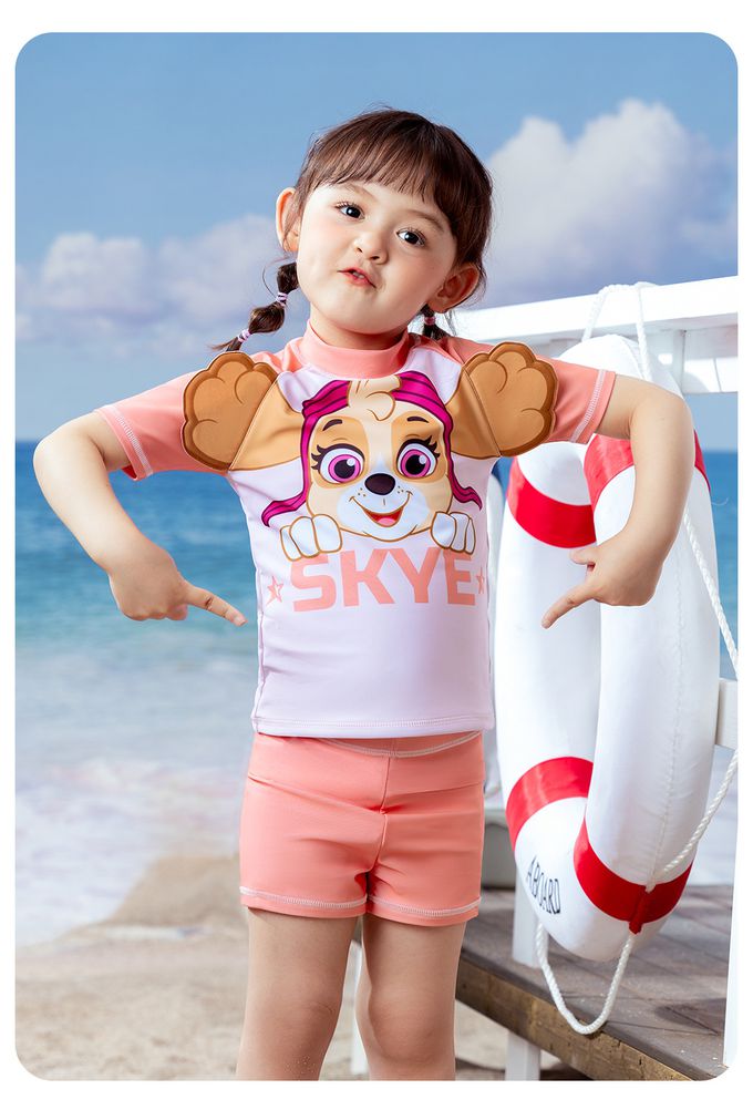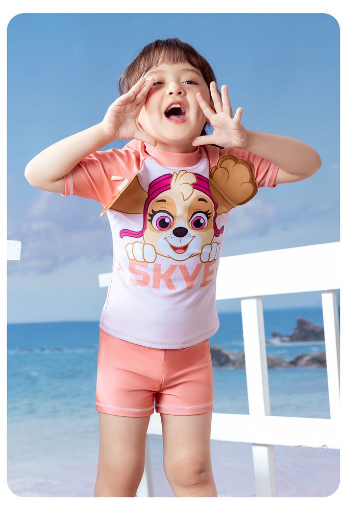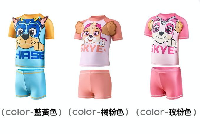 人氣卡通 - UPF50+短袖泳裝套裝-卡通人物天天-玫粉色
