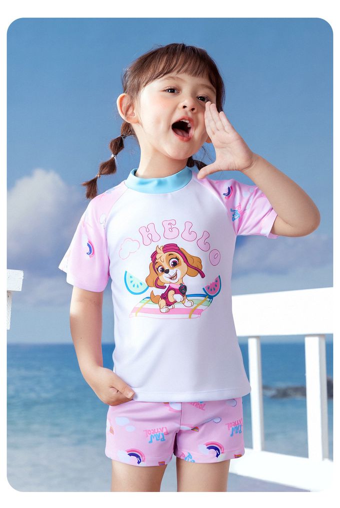 人氣卡通 - UPF50+短袖泳裝套裝(拼色印花)-卡通人物天天-粉色